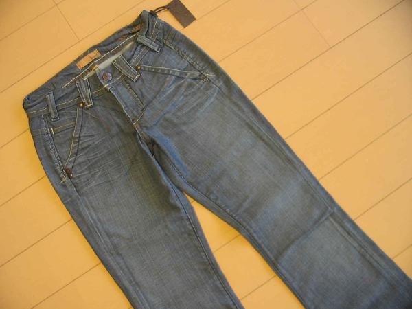 太ももとヒップの色落ち、脚付け根のヒゲ、ポケットやベルトルーフのデストロイ加工、と、こなれた印象です。