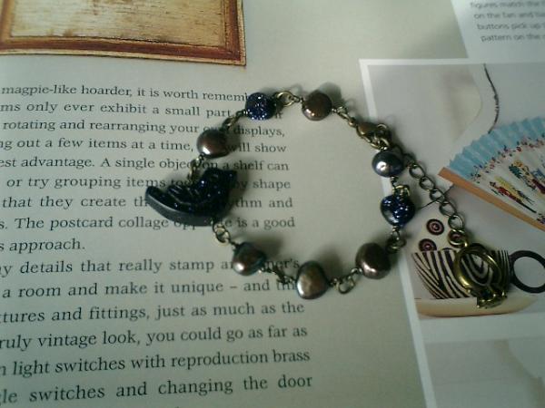 シックなグレーパープルの淡水パールと輝く星のようなブルーサンドストーンの小鳥さんとハートのブレスレットです♪遊びが入った可愛いデザインです♪淡水パールは8ミリ位のバロックです。小鳥さんは20×13ミリ位でハートは8ミリ位です♪長さは全長21センチ位で調節自由です♪お揃いのネックレスも出品しています。ハンドメイドをご理解頂いてノークレーム、ノーリターンでお願いします