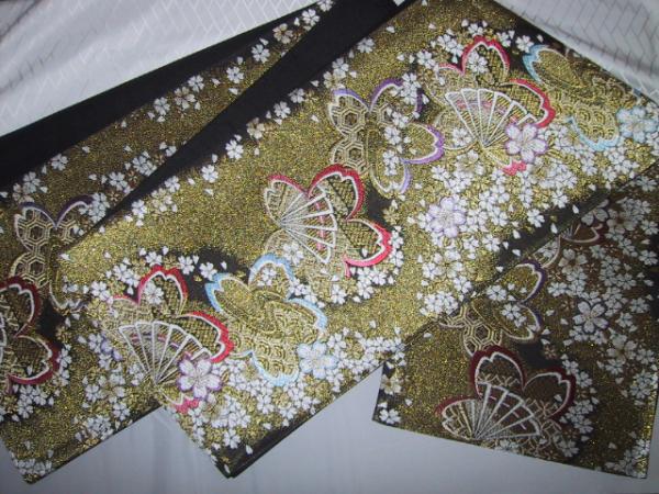 黒金地(裏地はくろ)かいきり(たれ先柄立ち上がり)~かいきり(手先柄はし)まで約443,5cmですので、出来上がり予想は約440cmです。巾31,2cm1203