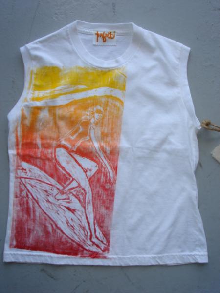 ハンドメイド 版画 サーフィン ロングボード Tシャツ レディース 女性 サーファー サーフィン ハンドメイド カリフォルニア ノースリーブ