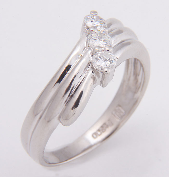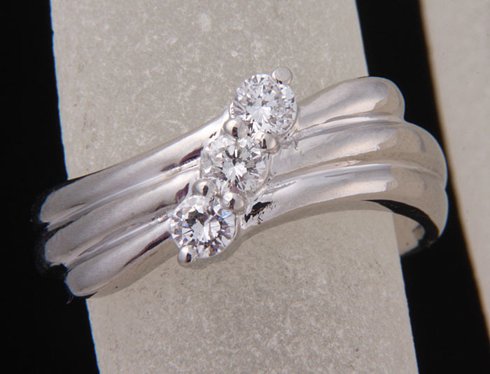 仕上げ磨き済、Pt900製ダイアモンド3石リングです。
