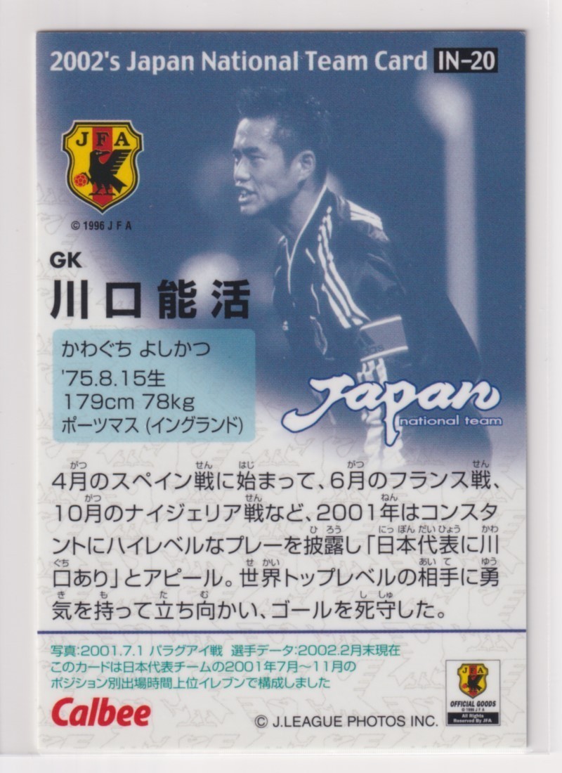 サッカー日本代表チームチップス2002第2弾 IN-20 川口 能活 GK ポーツマス