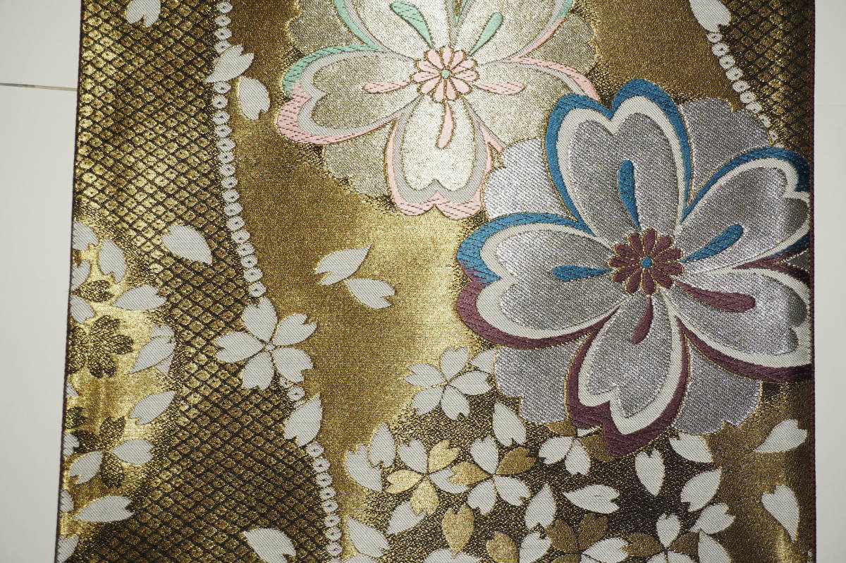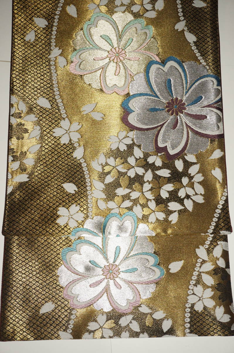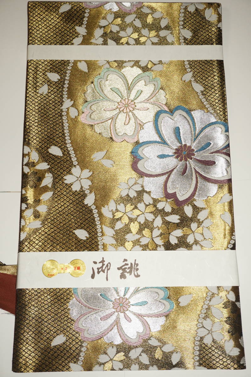 新品未使用六通柄袋帯。袋帯は絹100%金属糸等使用