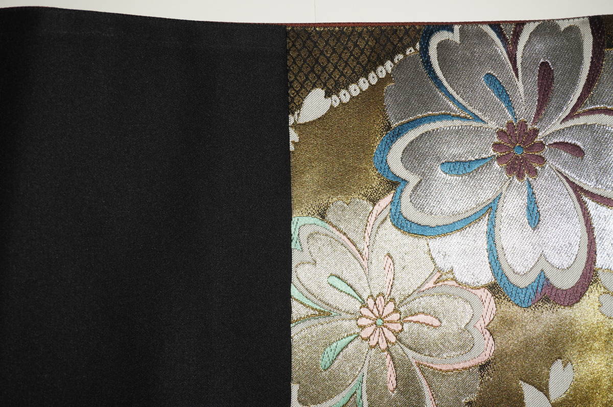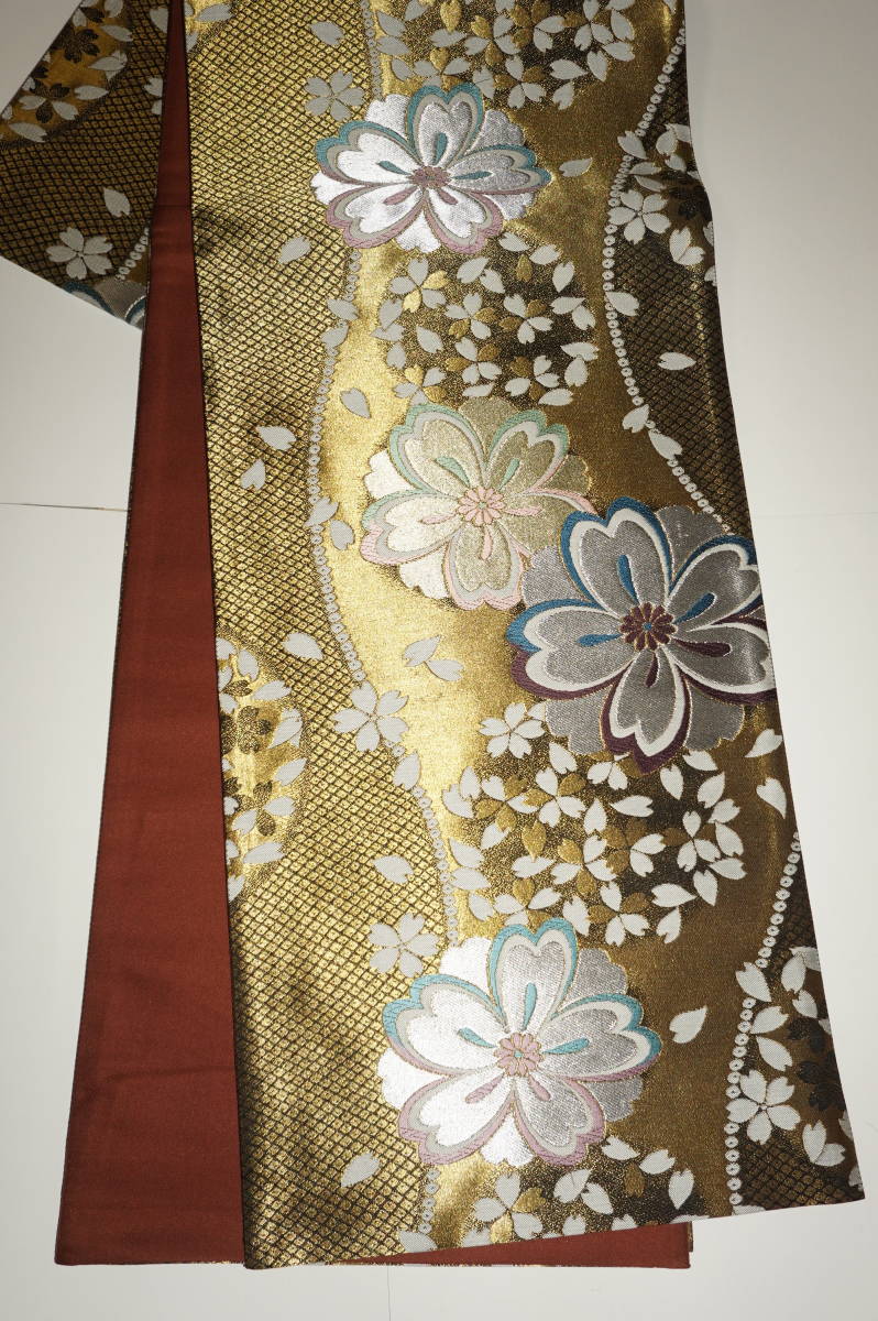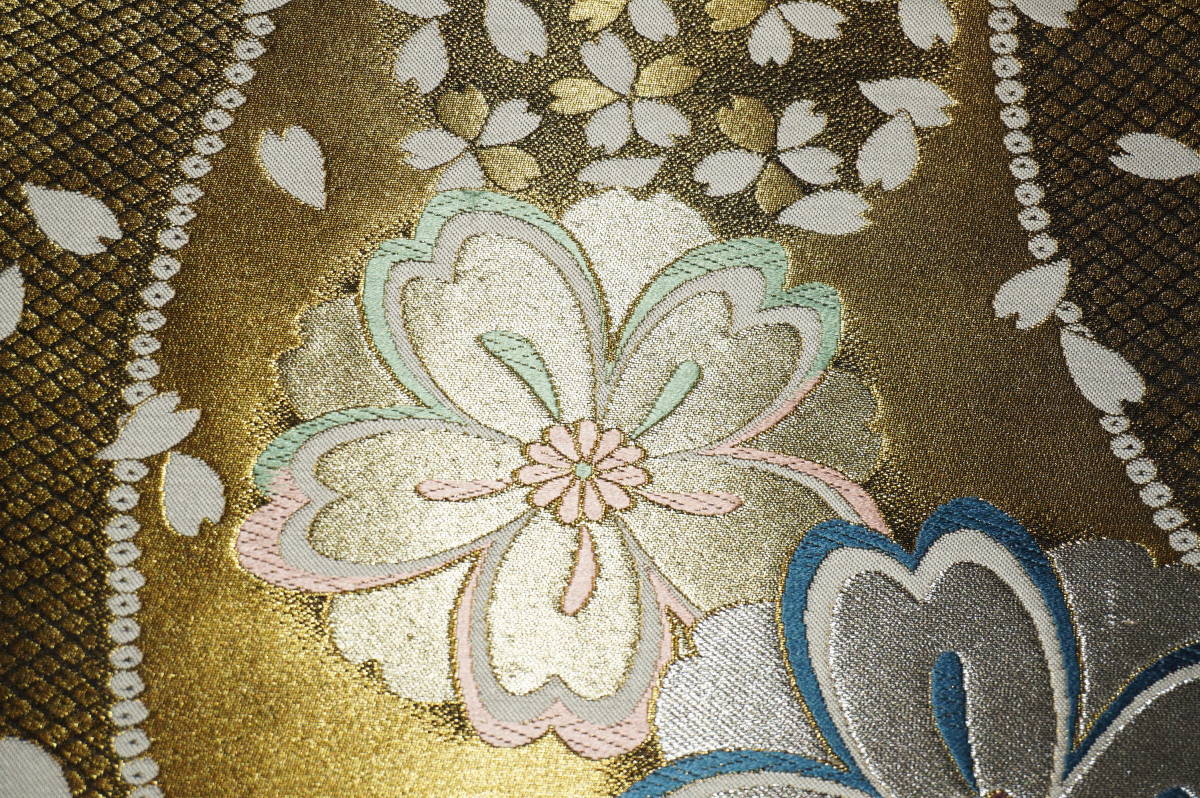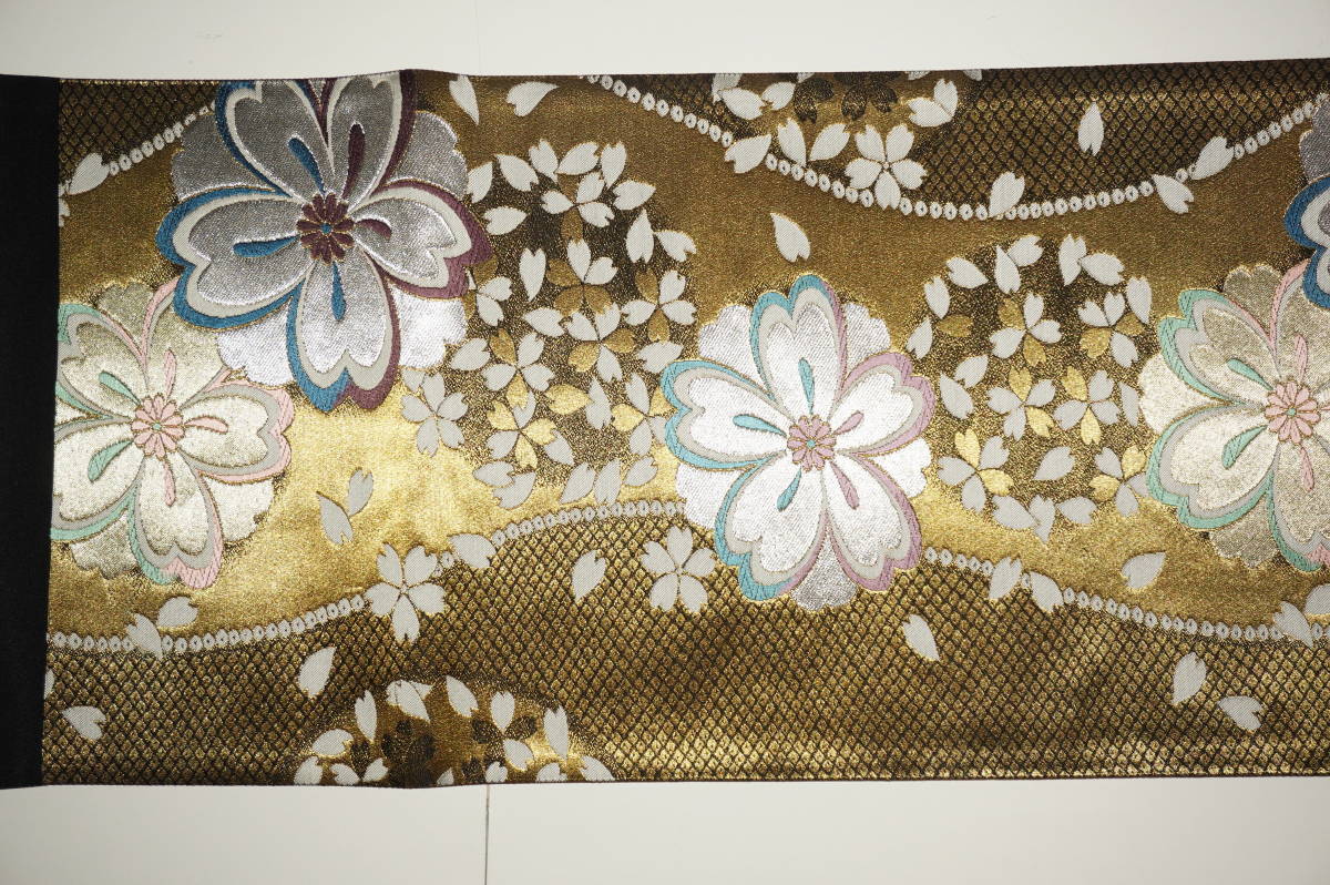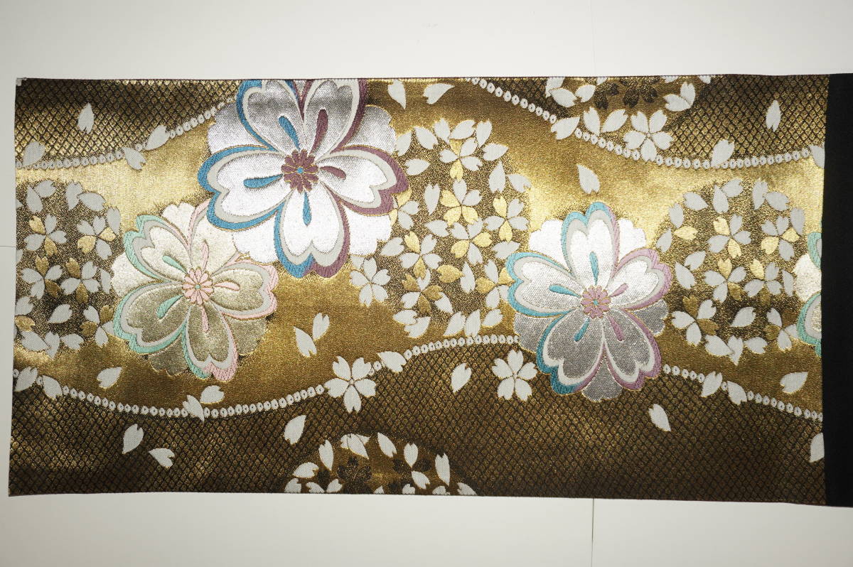 決済(送金)を落札日に行っていただければ翌日発送可能です。振袖用袋帯(綿芯での本仕立て済み)帯地= 西陣6通柄袋帯(西陣証紙)。 表地は金+黒色。裏地はちゃ色。巾、長さともM寸(Mすんは430cm以上)(当然二重太鼓や変わり結びもしていただけます、訪問着や、振袖むき)。 訳はないはずですが、 訳がもしあってもの処分価格で出品です