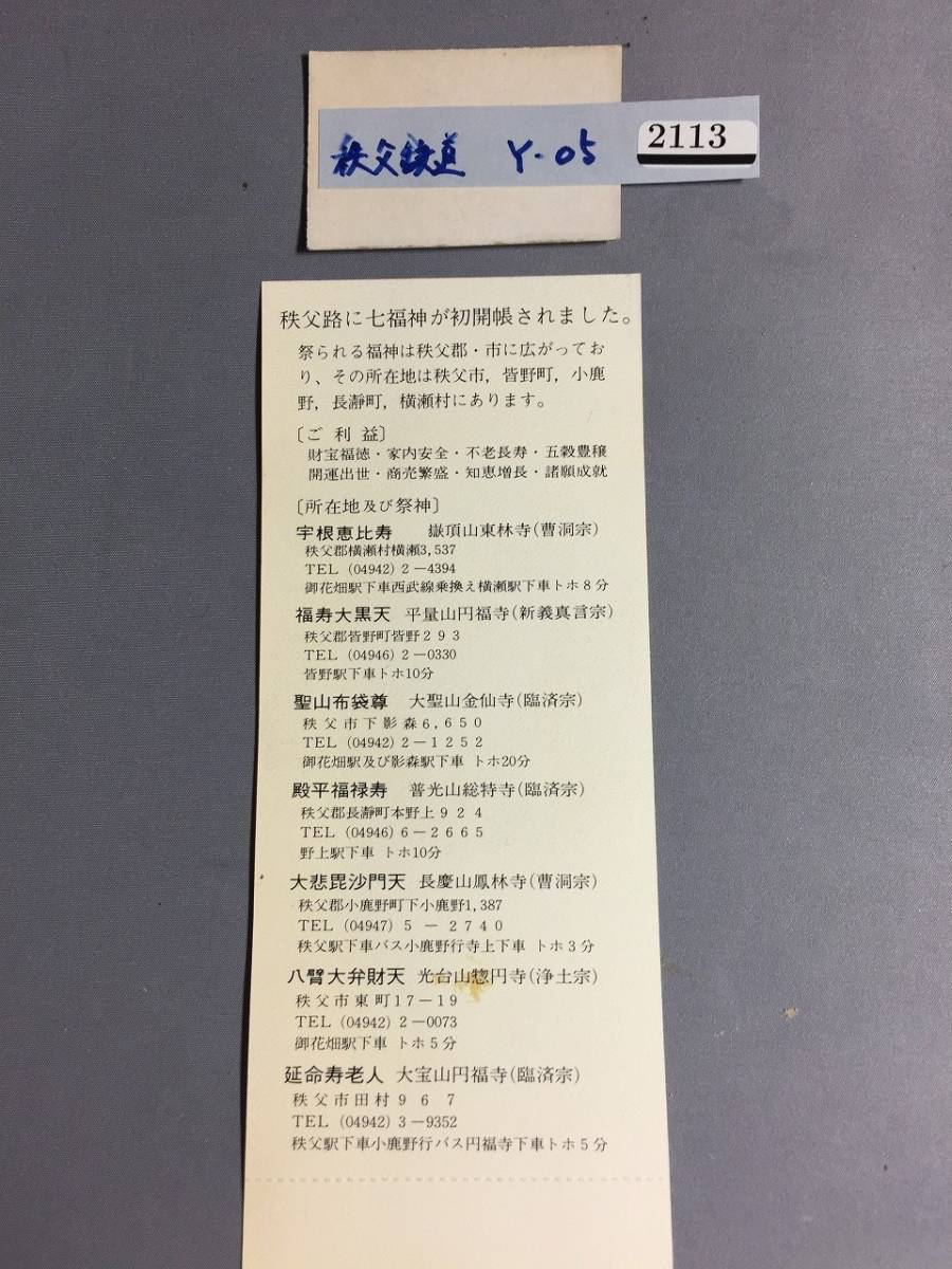 秩父七福神 初開帳記念乗車券 秩父鉄道 【Y-05-2113】
