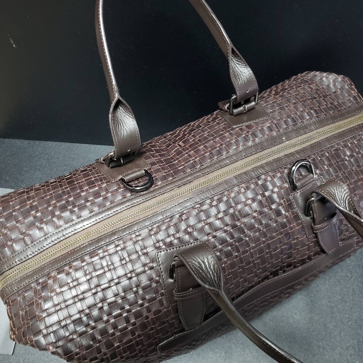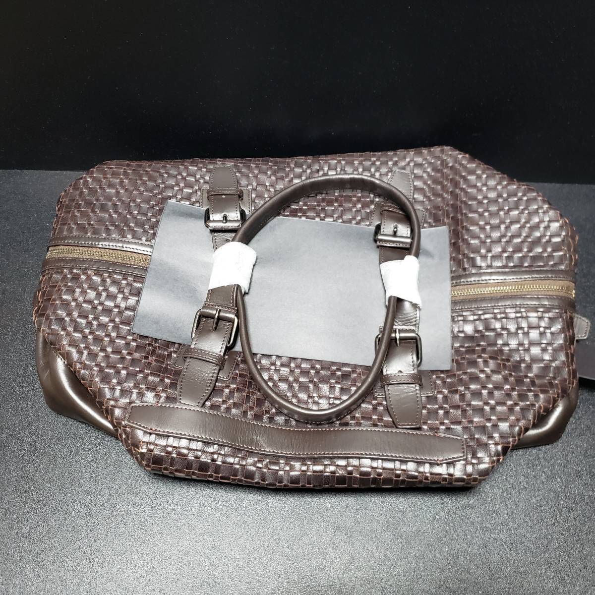 本品は茶色のメッシュレザーを用いたステイオーバー(宿泊用)バッグです。
