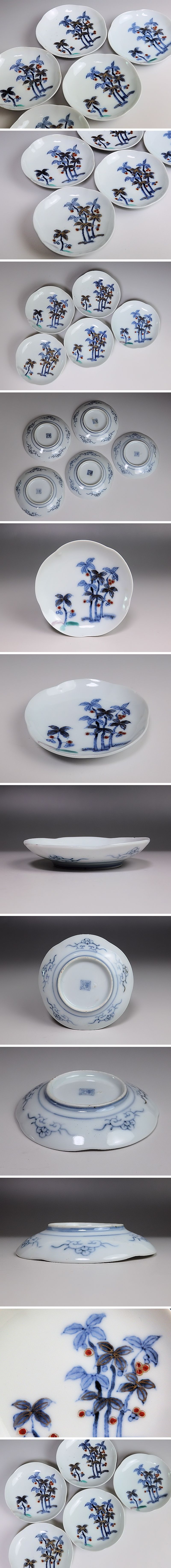 Yccm-A639 古伊万里 染錦 千両豆皿 5客