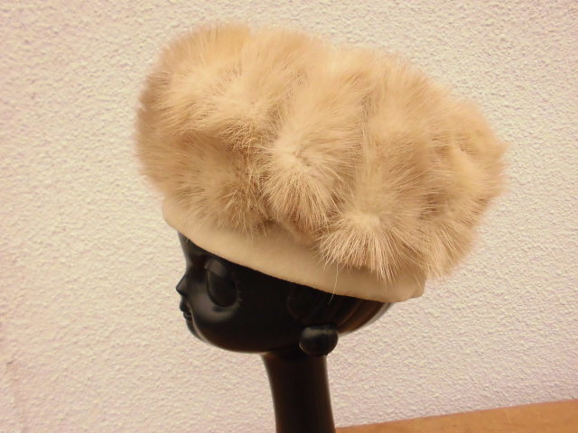 ●商品説明・・・商品説明:アメリカ買い付け品になります。詳しい年代は不明ですが、60~70年代頃~の古いものと思われるリアルファー(動物の毛皮)の帽子(ヘッドドレス)です。ベースの生地の上に4cm間隔ぐらいで毛皮が取り付けられています。made in USAです。