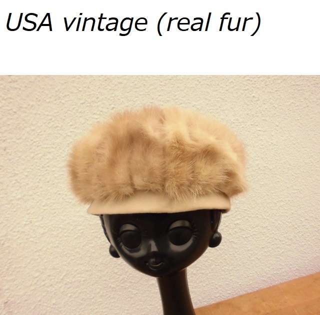 米買付 vintage USA製 本物毛皮ファー帽子 ロシア帽 毛皮帽子 ヘッドドレス  6 ●5 アメリカ古着 ヴィンテージ