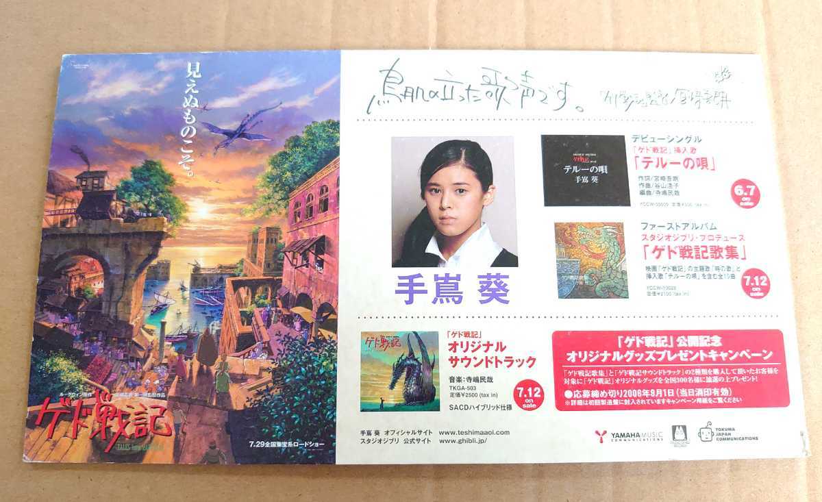 2006年、スタジオジブリ作品「ゲド戦記」の挿入歌、手嶌葵さんの「テルーの唄」他の販促用に作成された、非売品の店頭用スタンドポップです。