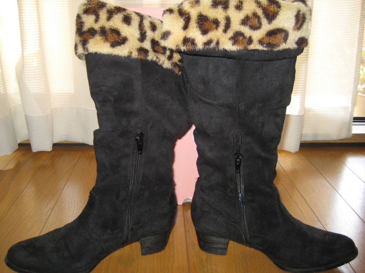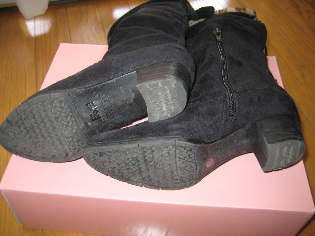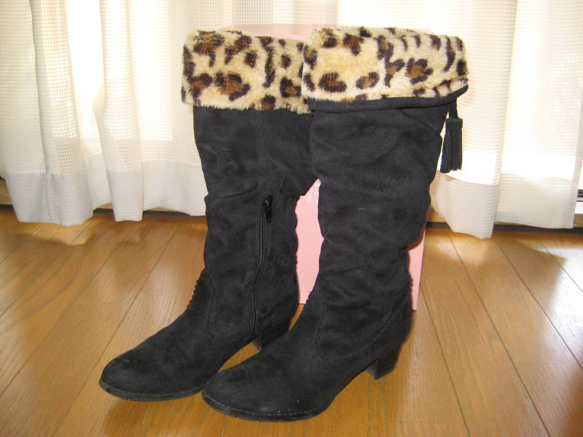 ヌーボNUOVO by Hawkins★黒ロングブーツ★レオパード柄★21cm