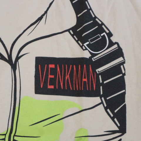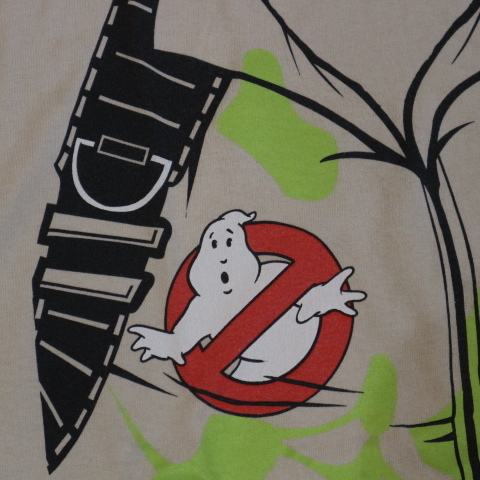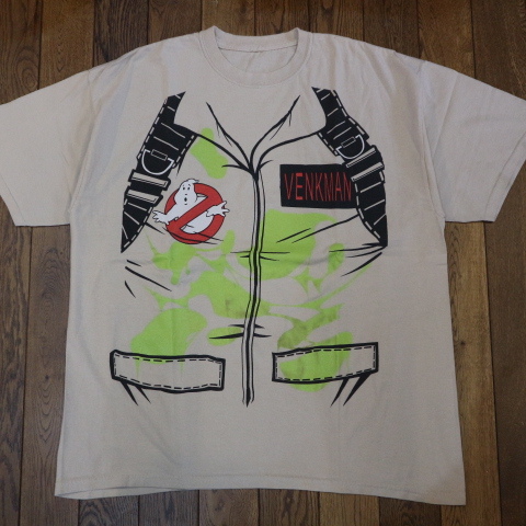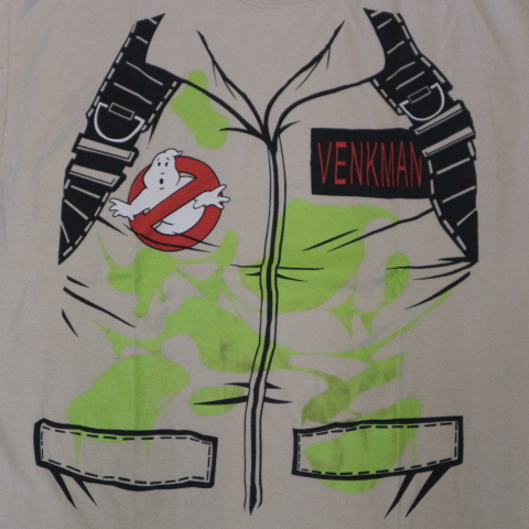 GHOSTBUSTERS ユニフォーム Tシャツ ベージュ ゴーストバスターズ だまし絵 映画 ムービー キャラクター イラスト ロゴ ハロウィン USA古着