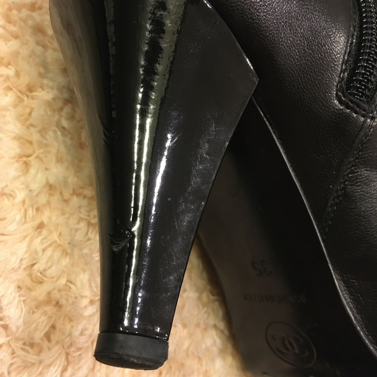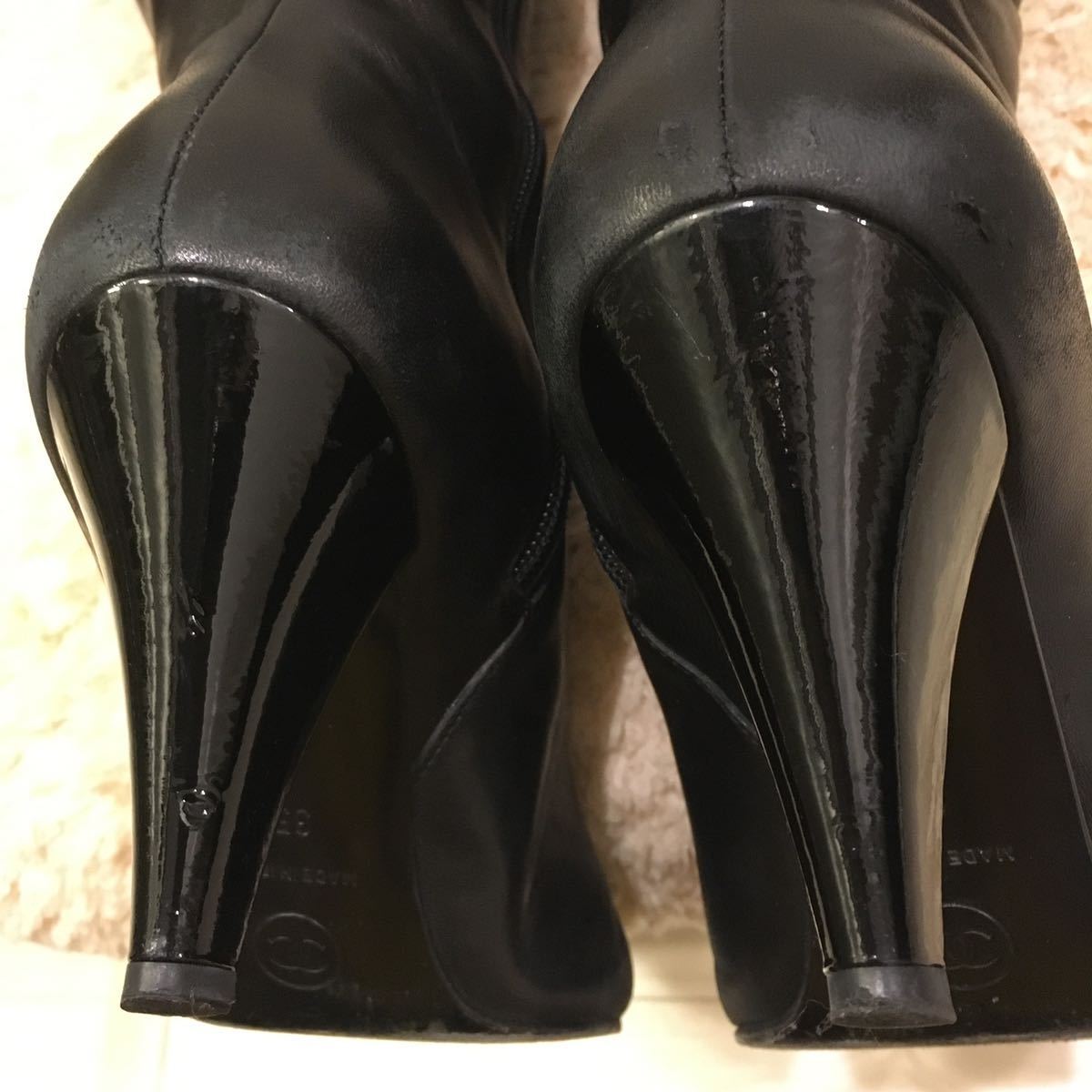 かかと、ヒール部分に擦れ傷がありますが黒なので履いていて目立たないと思います