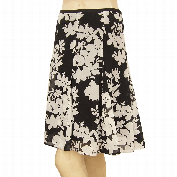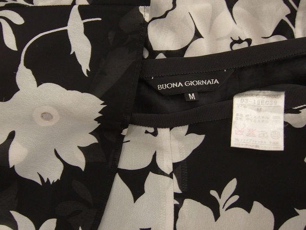UM美★ボナジョルナータ*BUONA GIORNATA★黒*白系★お花柄★シフォン素材★たっぷりフレアスカート★Mサイズ(9・38号)