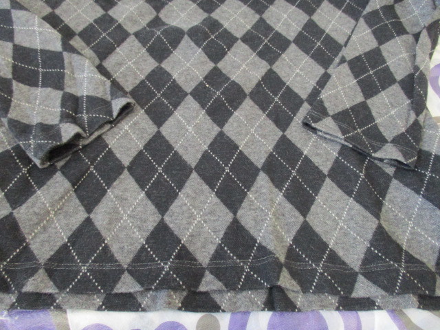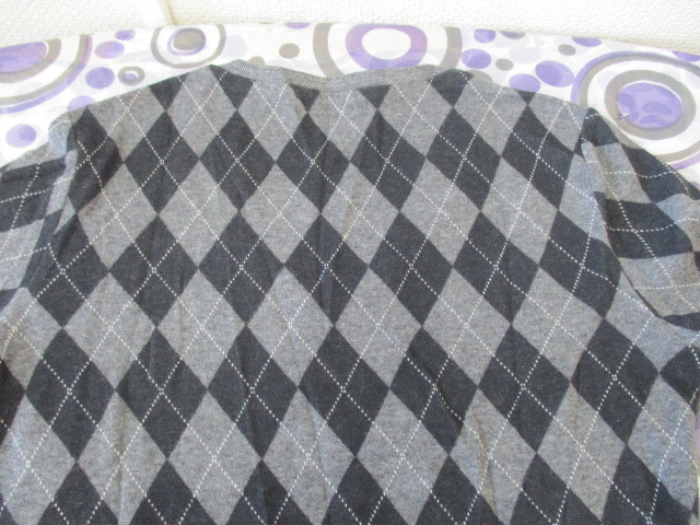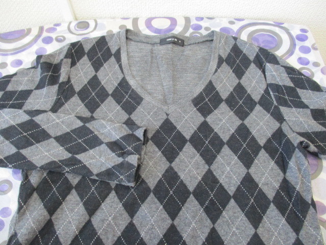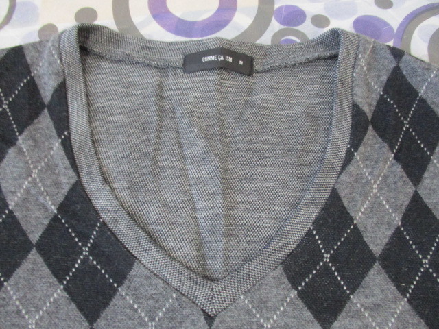 ★ COMME CA ISM アーガイル模様 ( 黑×グレー )Mサイズ Vネック 長袖 セーター 綿100%