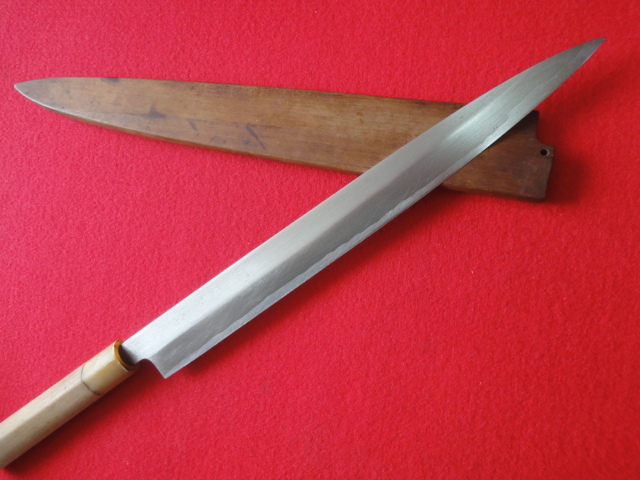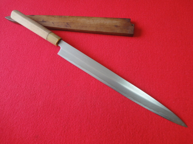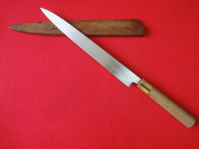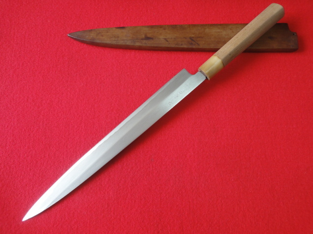 【堺菊守】刺身包丁 刃渡29.3㎝ 全長45㎝ 峰厚4.5㎜ ※鞘付 ※片刃 中古品 全国一律送料1100円