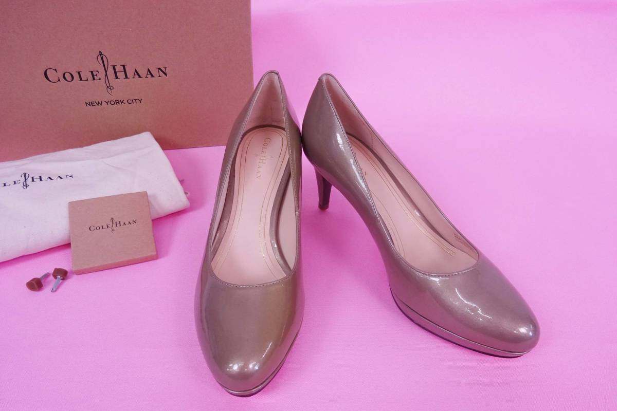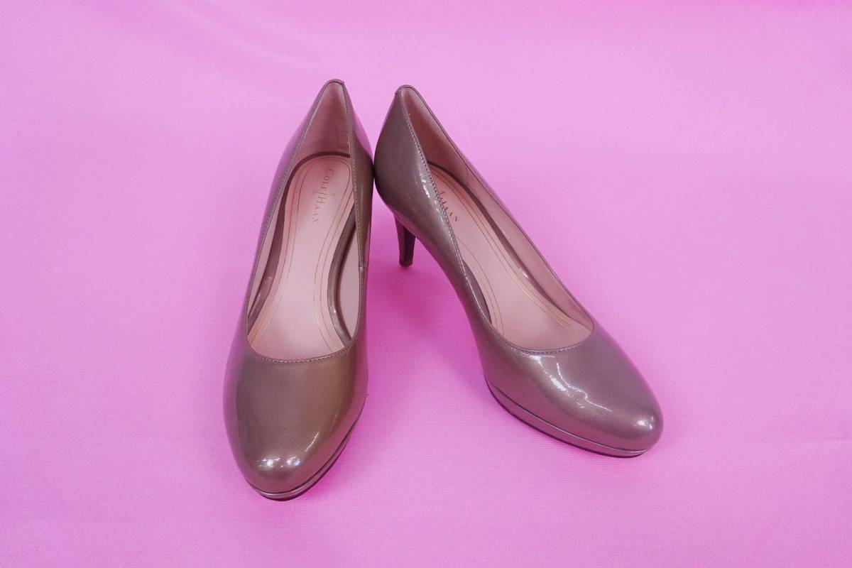 コールハーン CHELSEA LOW PUMP/チェルシー ローパンプス パテント ピューター ほぼ新品 7 1/2 \41800