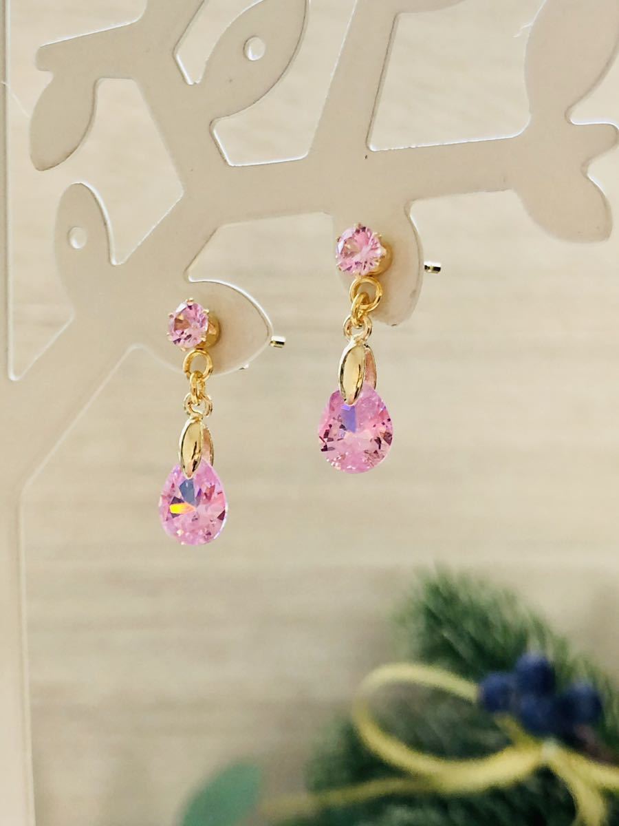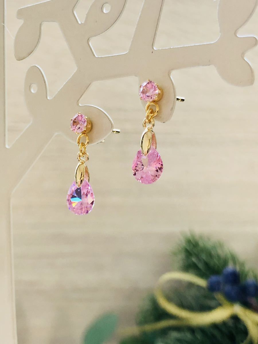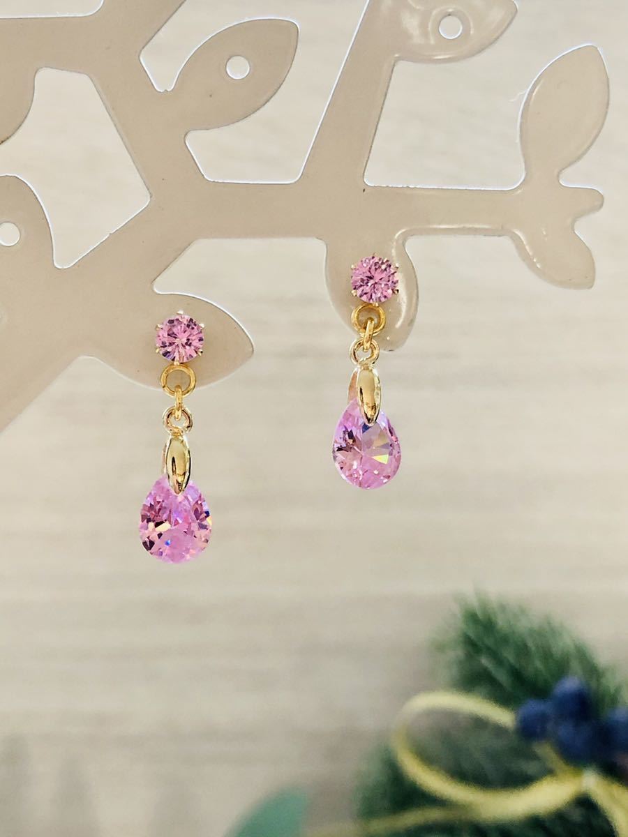 4㎜サイズのCZピアスにCZドロップを飾り付けたシンプルで可愛いピアスです。