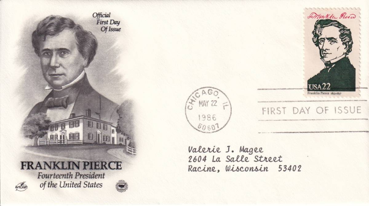 【FDC】著名人:第14代大統領フランクリン・ピアース(1986年)(アメリカ) t1820