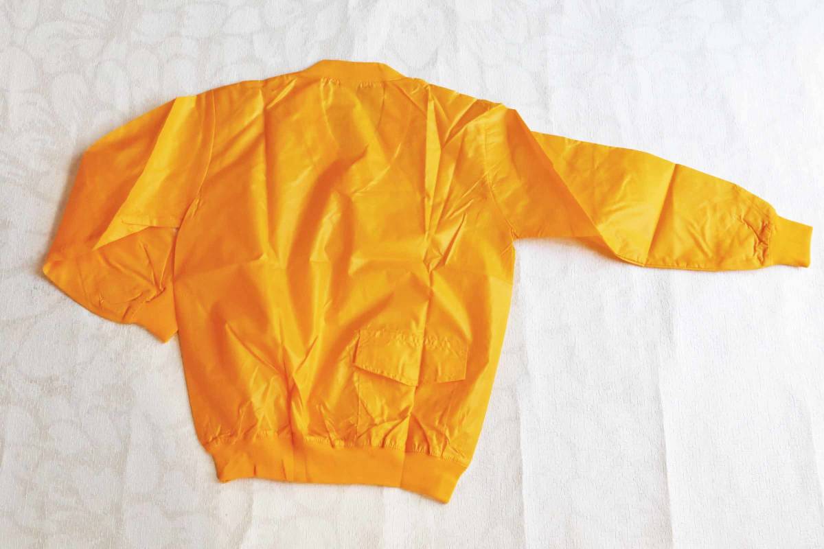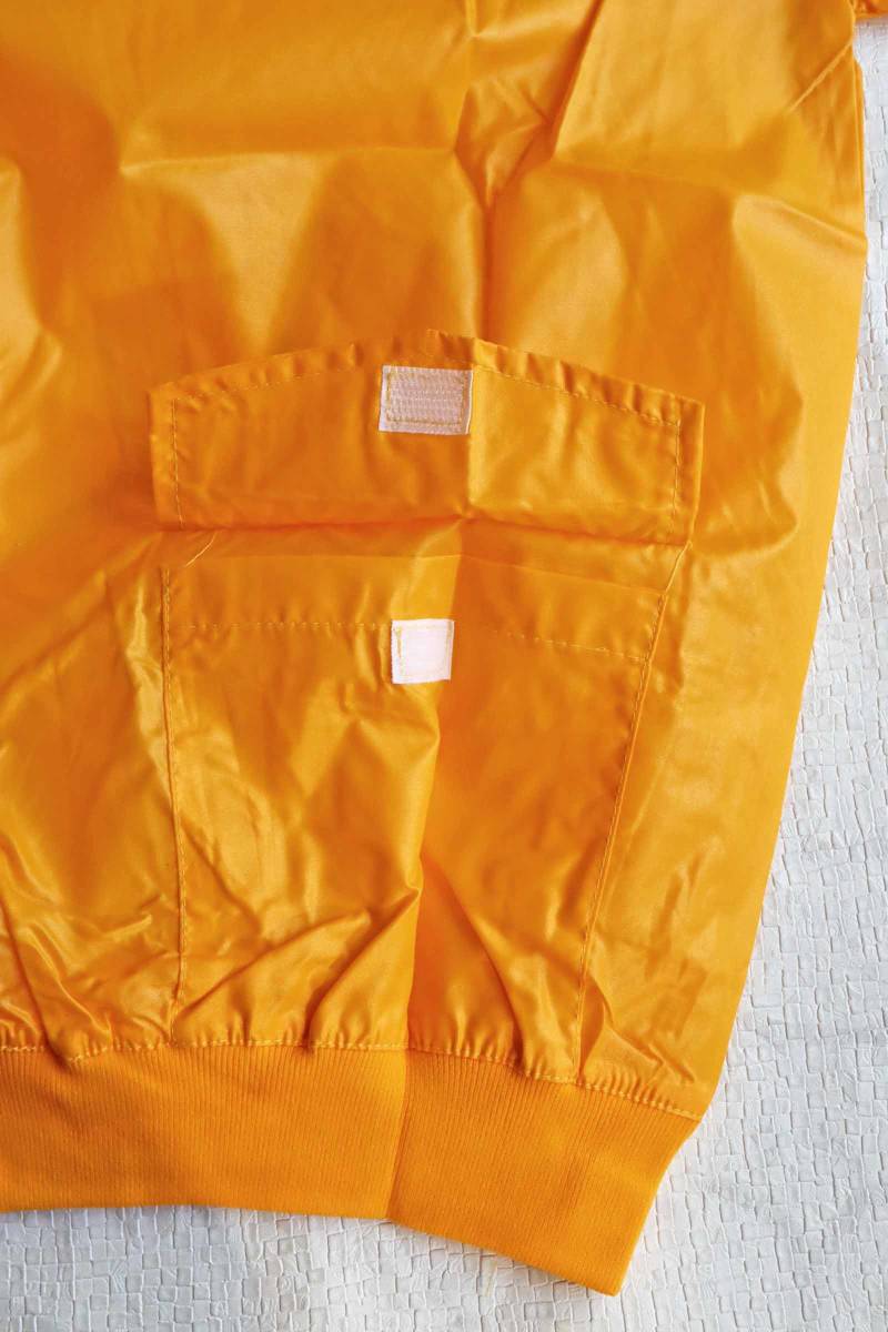 ウインドブレーカー。昭和の時代のお品物。 Vネック。 後ろ身頃、右側にポケットあり。(画像参照) 「130㎝」の表示です。 下記の実寸をご参考下さい。 ◆素材:ナイロン ◆実寸:胸囲88 着丈51 肩幅37 袖丈45 ◆メーカー希望小売価格(税抜き):@1200 ◆備考:デッドストックです。きれいな状態です。 落札の際は、上記の旨ご了承下さい。 | |||