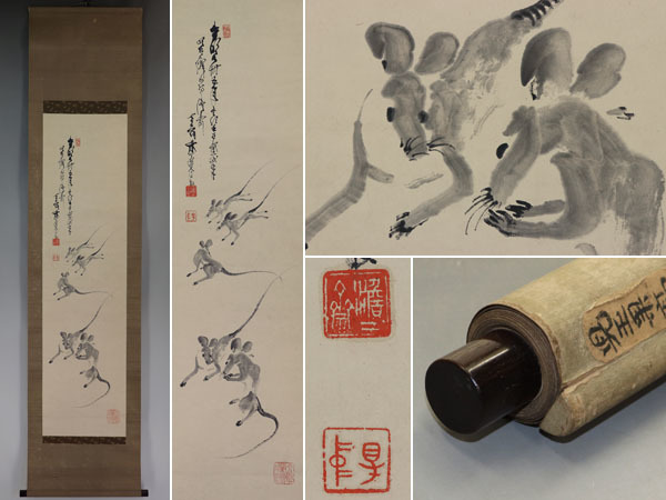 | №2010093【真作】児玉果亭【慶祝図】◆紙本◆合箱◆掛軸 | |
