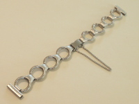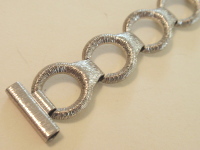 材質は黄銅で、表面加工はロジュウム加工のシルバーカラー一色のベルトです。