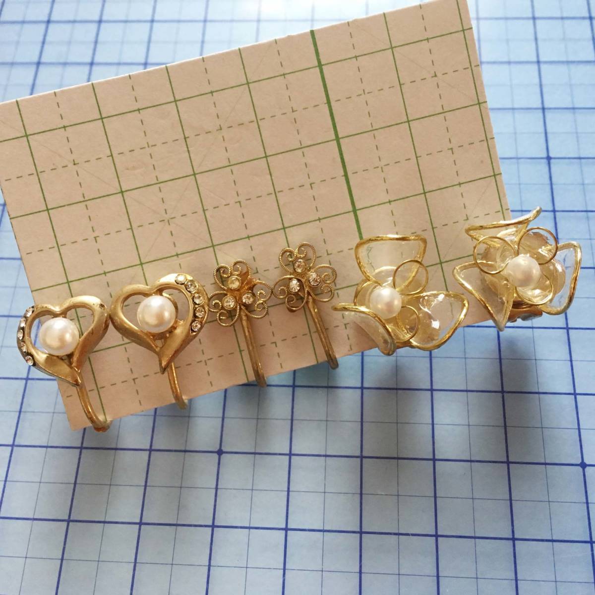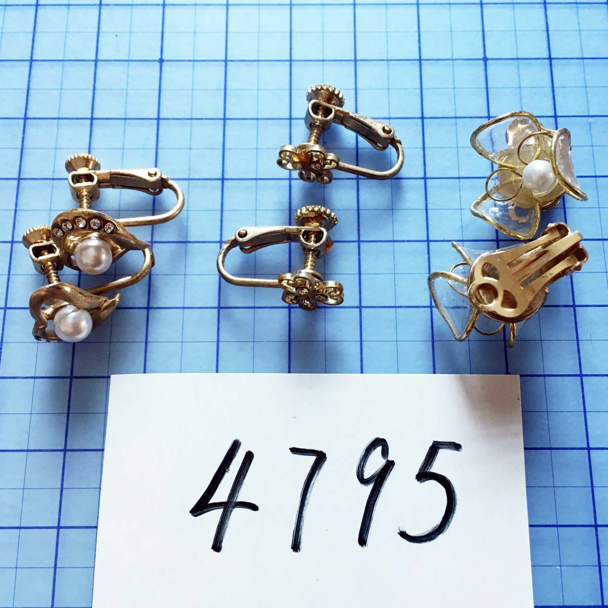 フェイクパール ラインストーン ゴールド イヤリング お得3点セット No.4795