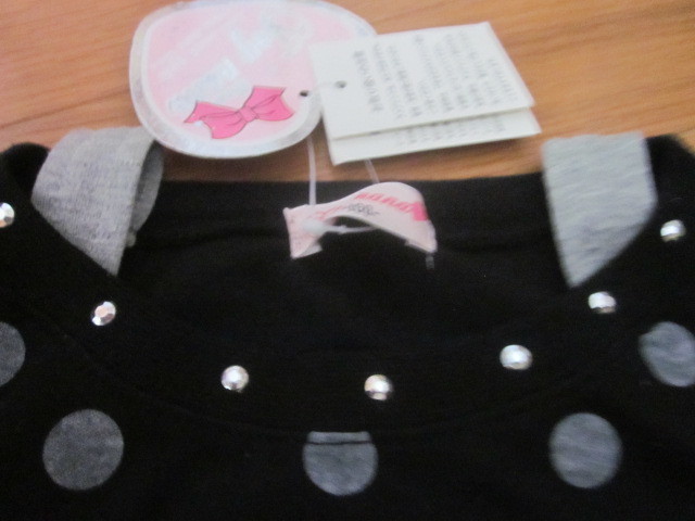 新品☆女児ラメプリント七分袖カットソー☆Tシャツ☆スタッズ付き☆サイズ100
