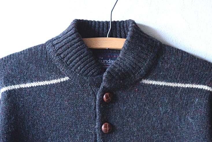 オールド ヘンリーネック セーター シェットランド ウールニット メンズM 黒色 CH0427