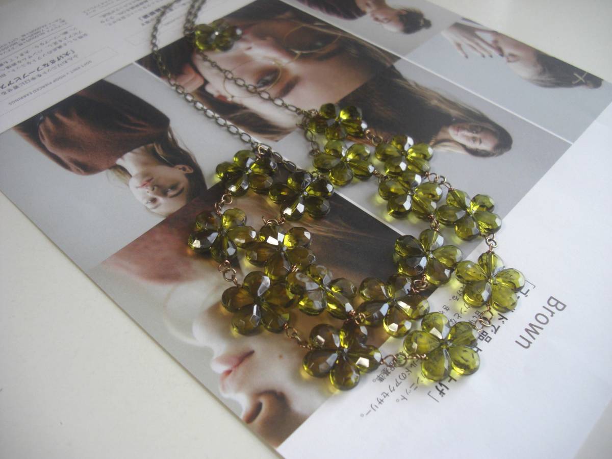 恋愛映画の余韻・・シリーズです♪シックなお花を繋いで・・モスグリーンの樹脂フラワーの2連のネックレスです♪樹脂フラワーは20ミリ位です♪軽いのでこれからの季節にぴったりです♪落ち着 いたモスグリーンでシックな表情です♪ネックレスの長さは60センチ+アジャスター12センチで最長72センチ位です♪お揃いのシリーズも出品しています♪シンプルで飽きのこないいつまでも着けられるデザインを考えて作りました ♪ハンドメイドをご理解頂いてノークレーム、ノーリターンでお願いします