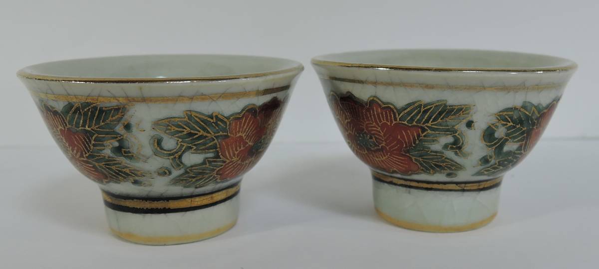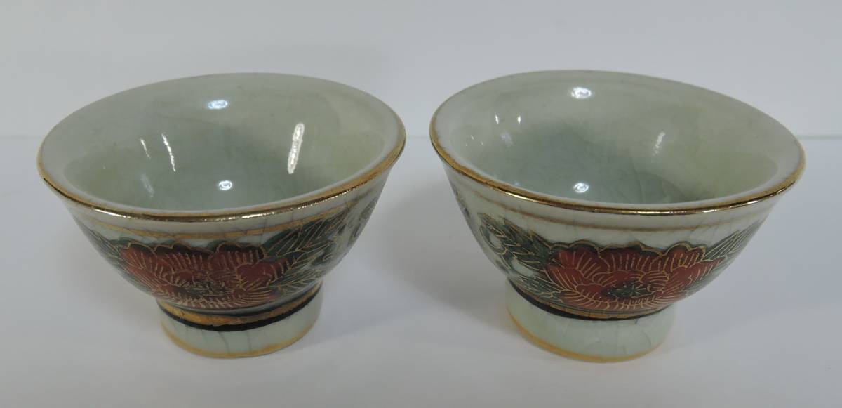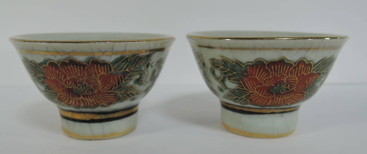 ☆03D 昭和レトロ■日本酒/清酒 お猪口/盃 九谷焼 牡丹 2個■未使用