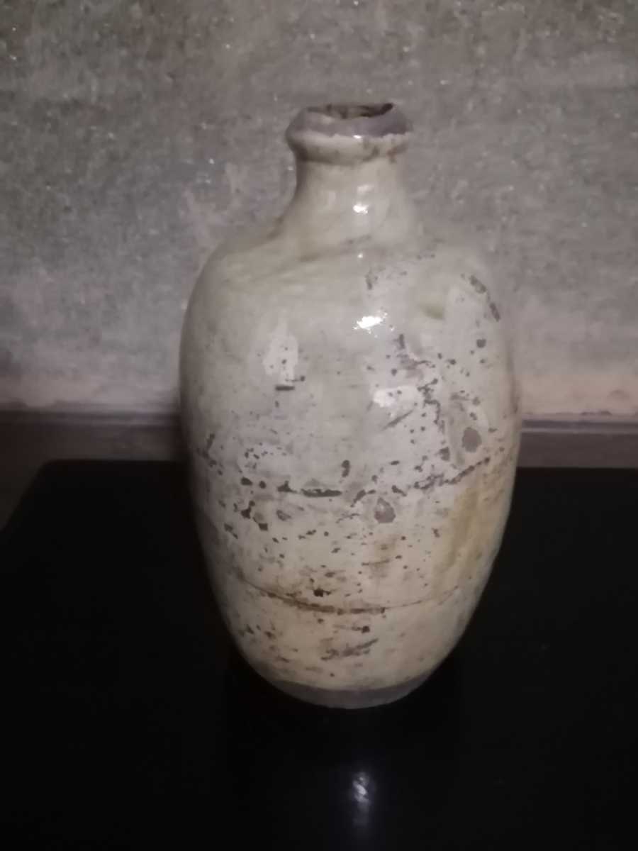 瀬戸徳利といえば高田。たっぷりと入る江戸中期の豪快な大徳利です。重さは1㎏、これに酒をいっぱいにして、夜道を歩いて帰るのはさぞかし難儀だったことでしょう。胴にニューがあります。