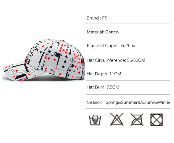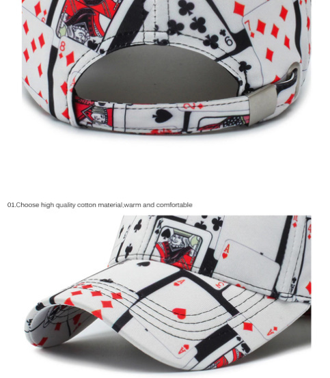 【商品説明】 ポーカープリント スナップバック帽子 コットン素材 男女兼用 サイズ : 56-60㎝ 重量 : 150 素材 : コットン | ||