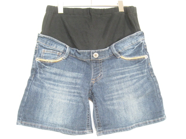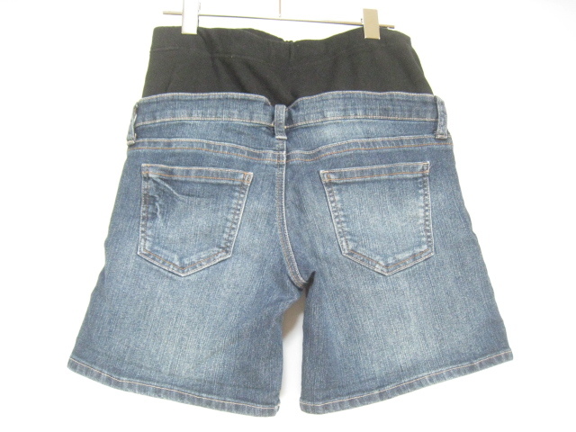 カイタックインターナショナル マタニティ ボトムス ショート デニム ジーンズ ジーパン ウエストゴム インディゴ Sサイズ