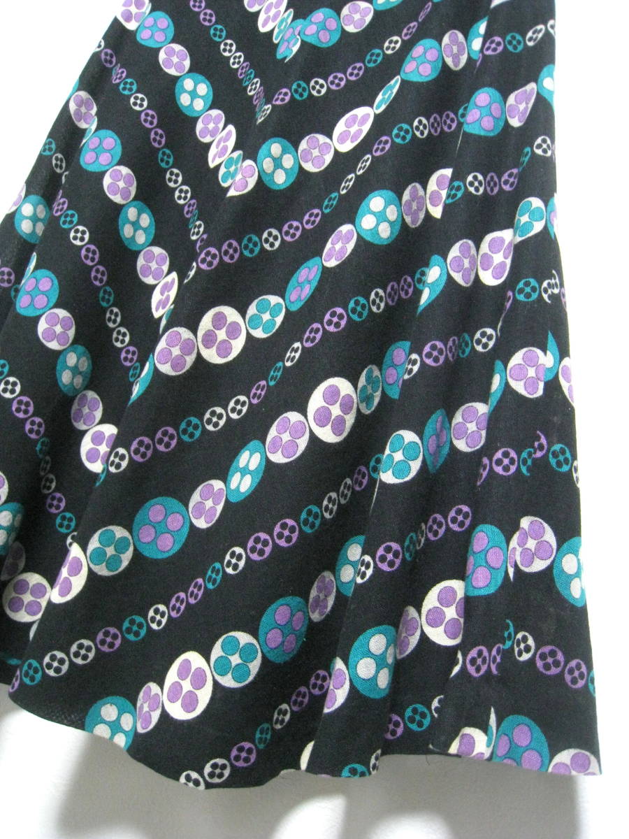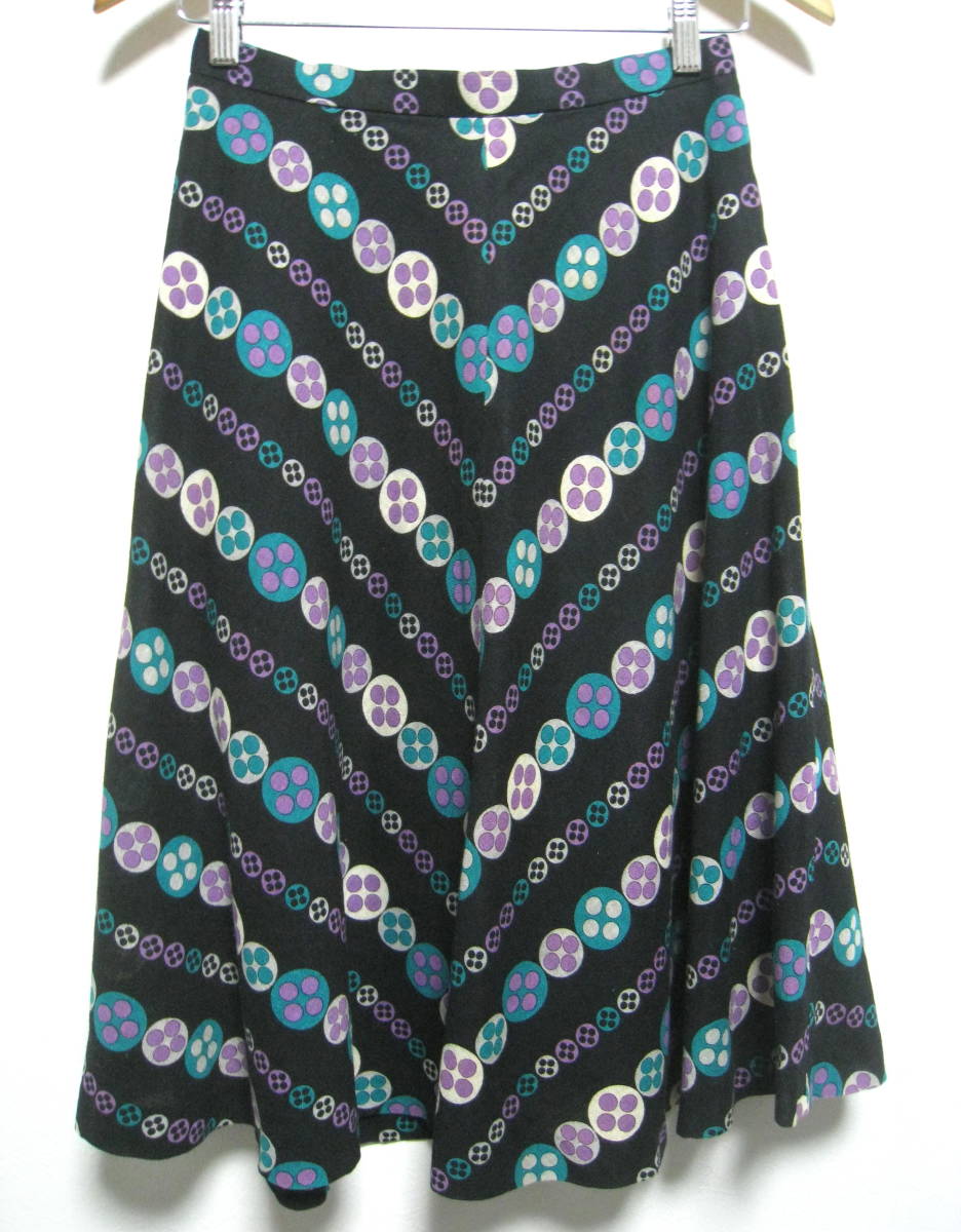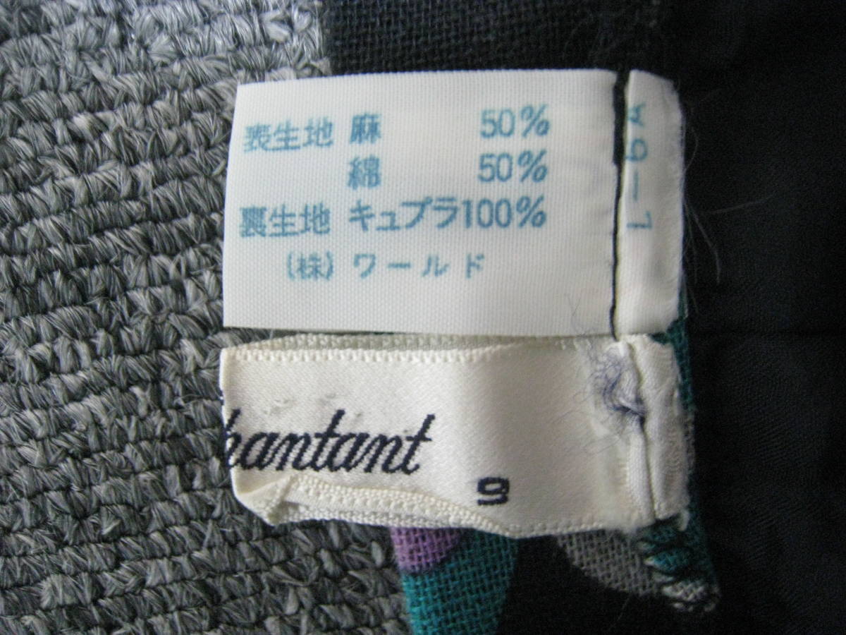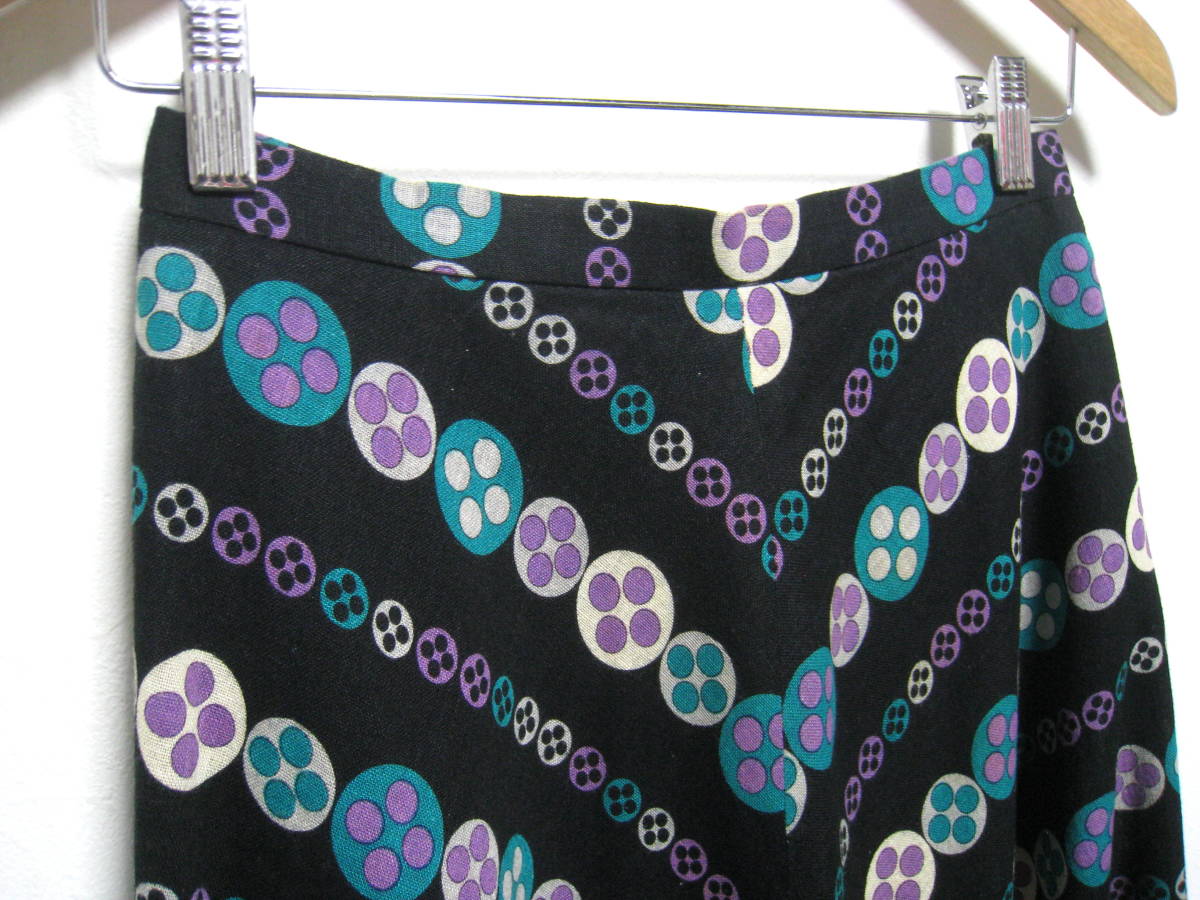 ★昭和レトロ◆Lui Chantant ルイシャンタン リネン コットン プリント フレアスカート レディース サイズ9 (株)ワールド★ | ||||