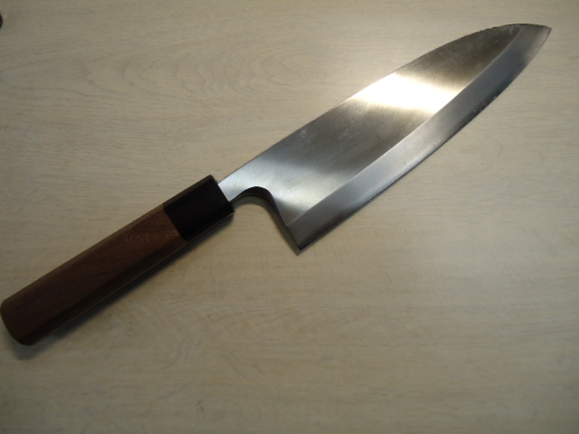 錆びずに切れる!銀三鋼割込み 特大片刃出刃210 ウオールナット八角柄 右利き用