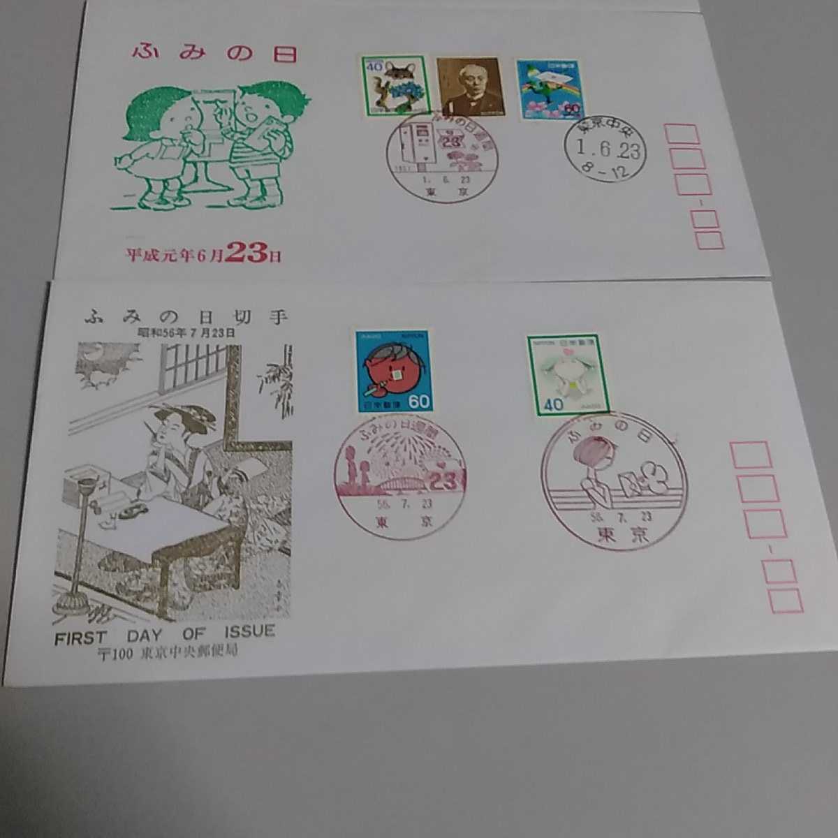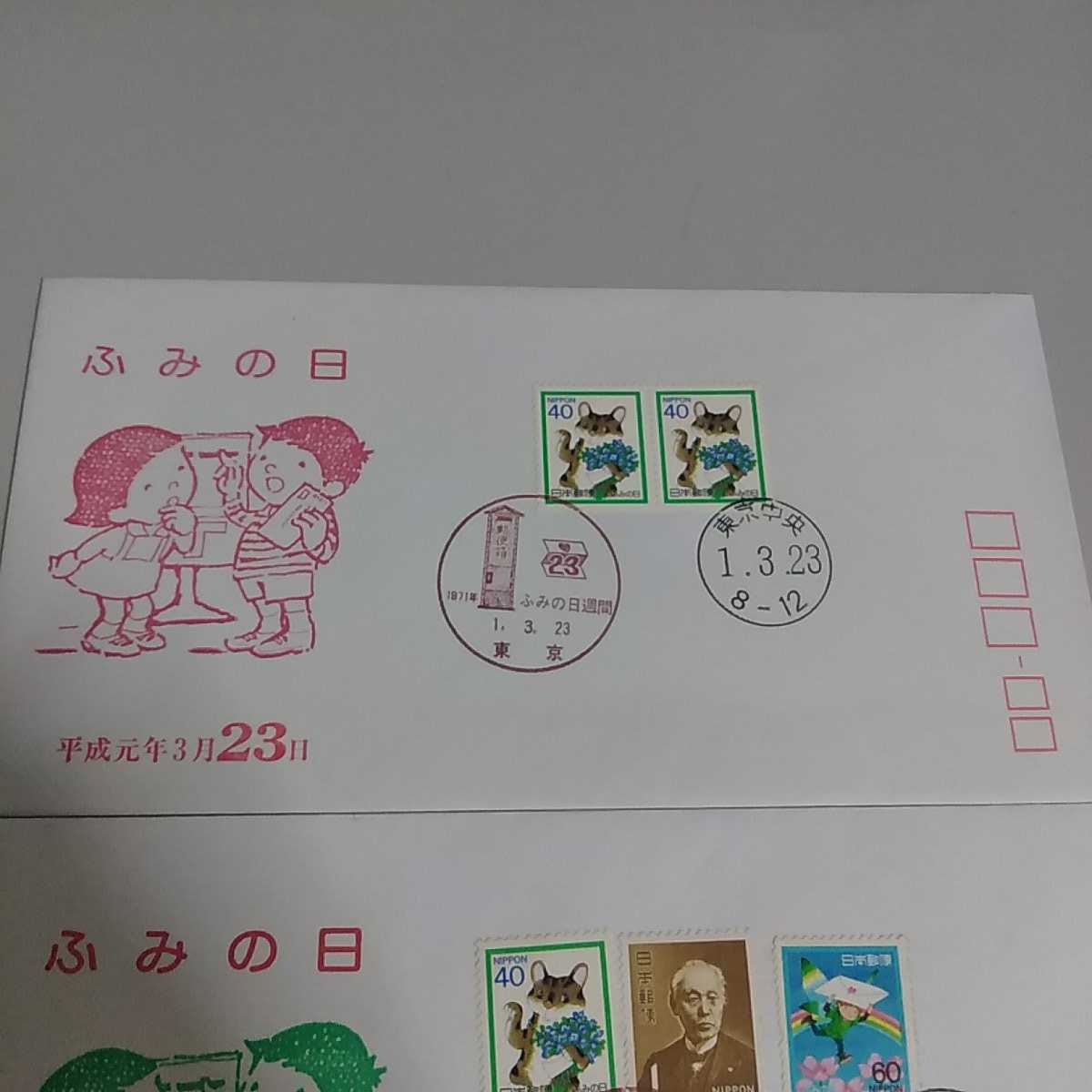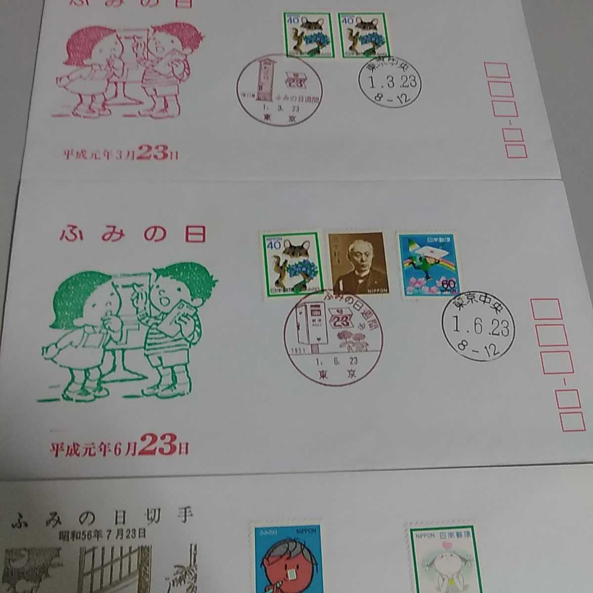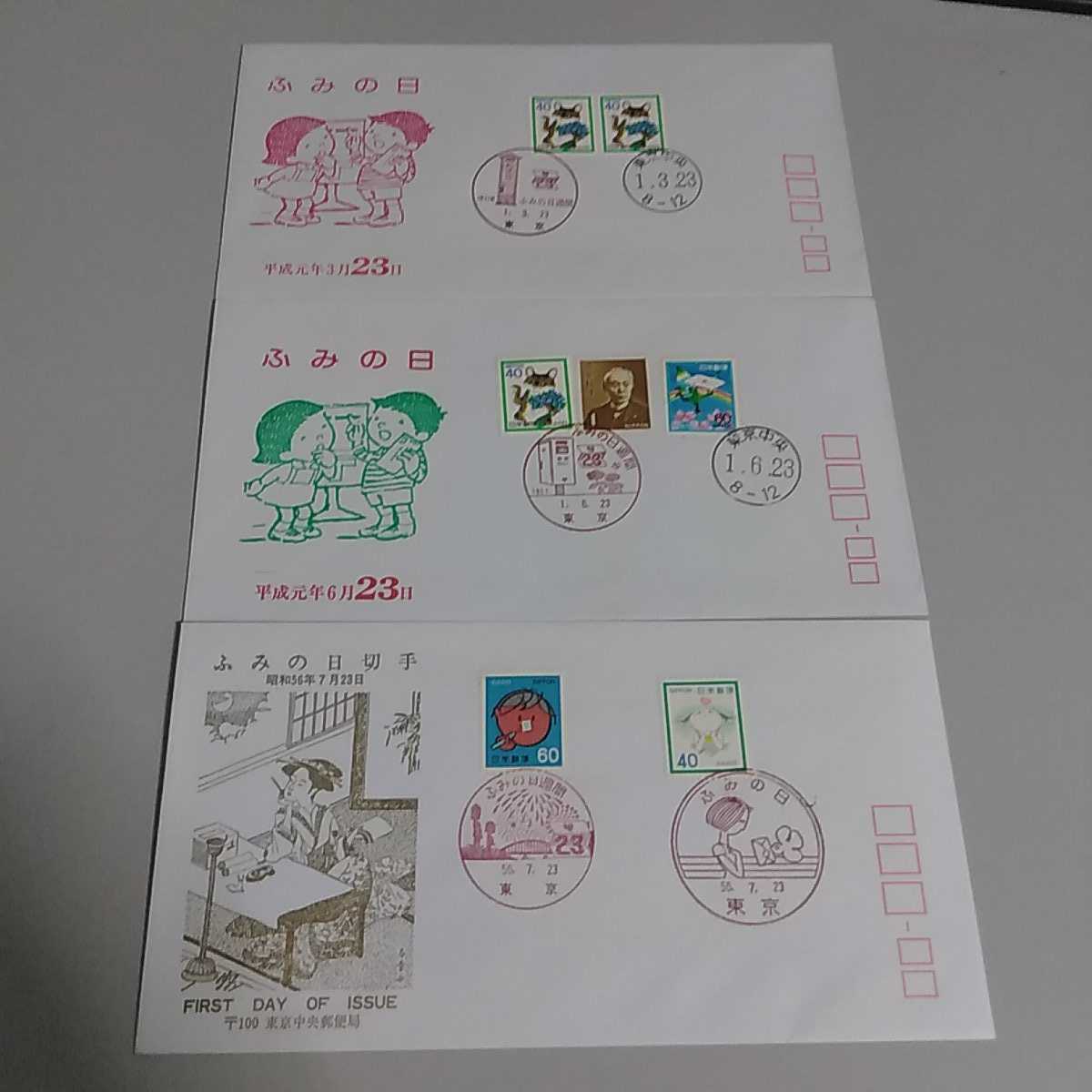 8 初日カバー First day Cover東京中央郵便局 ふみの日 三枚セット 昭和56 平成3 平成6