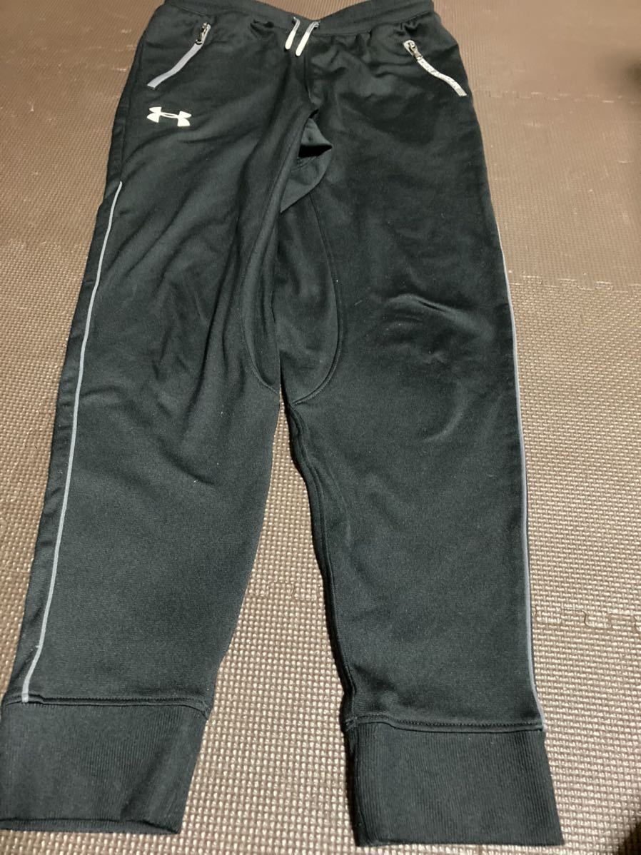 美品UNDER ARMOURファスナーロゴ入り黒、グレー、白ストレッチパンツ