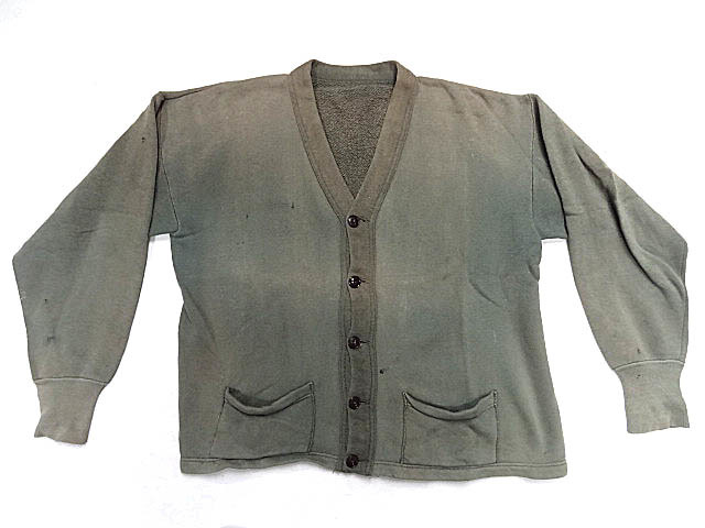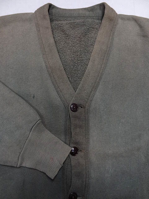 ビンテージ 希少 50S スウェット カーディガン 緑 グリーン カーキ カラー 色落ち アジ 雰囲気 レア 珍品 後付け 色褪せ ボロ ダメージ 60S