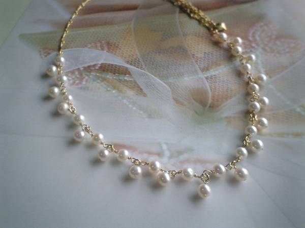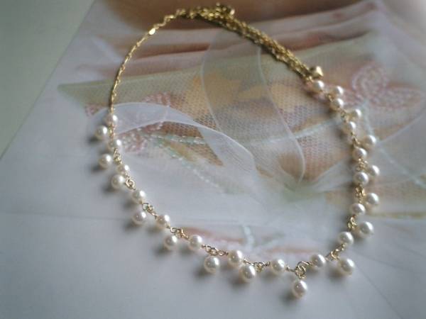 ロゼッタのお気に入り・・シリーズです♪普段使いのパール・・さりげなくつけていただきたい淡水パールのネックレスです♪♪6ミリ位の淡水パールはレース模様のように繋げて可憐な表情です♪長さは52センチ+アジャスター10センチで最長62センチ位です♪お揃いのネックレスやブレスレットも出品しています♪♪シンプルで飽きのこないいつまでも着けられるデザインを考えて作りました!ハンドメイドをご理解頂いてノークレーム、ノーリターンでお願いします