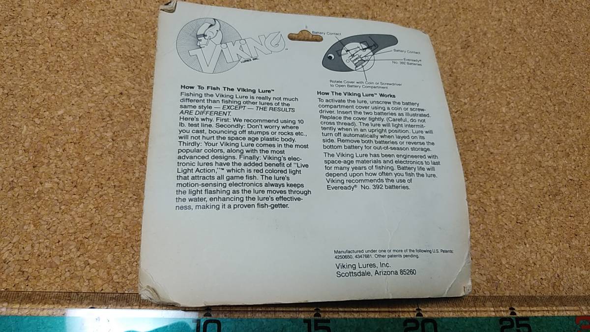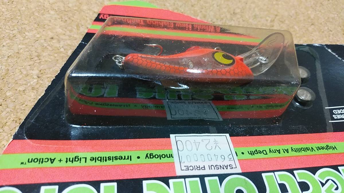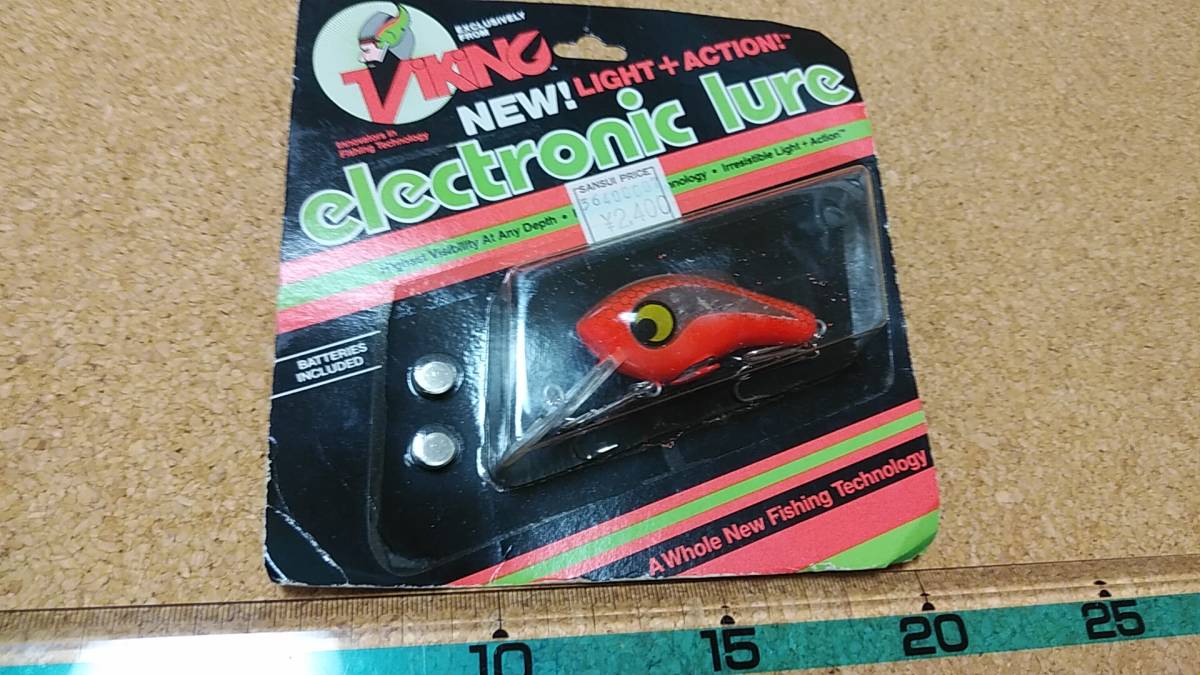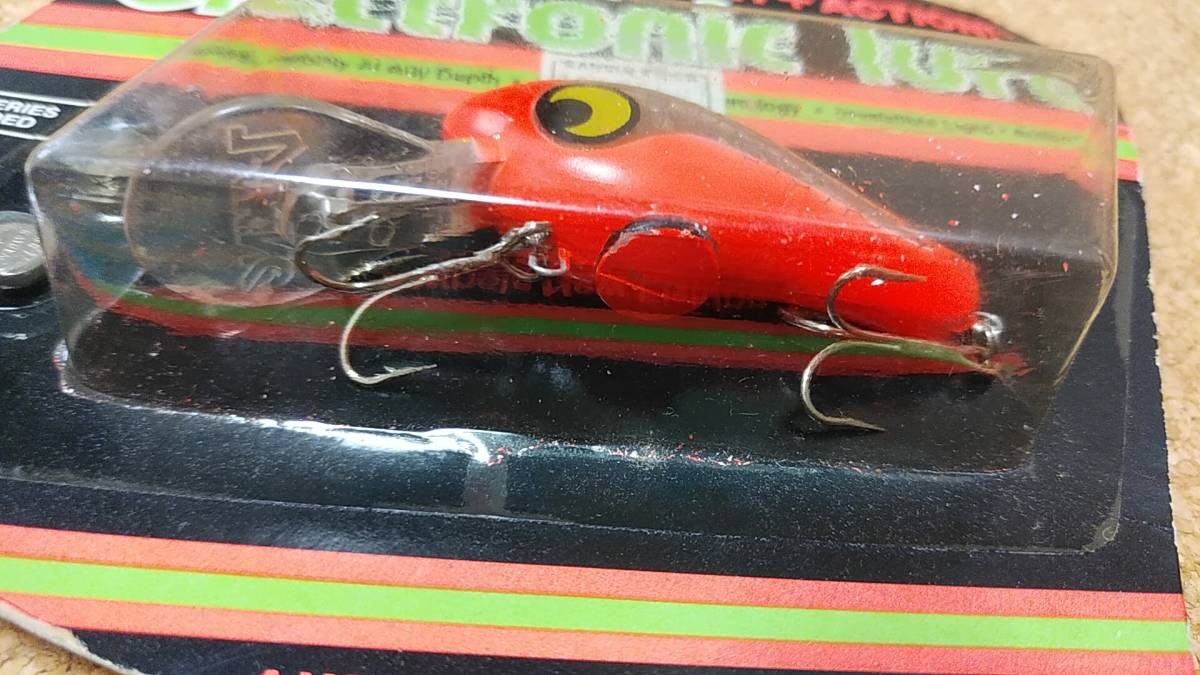 購入後、段ボールに保管をしていました。数十年以上が経過していますので、経年劣化、箱の痛み(台紙の曲がり、擦り傷、汚れ、黄ばみ、小破、パックの割れなど)があります。付属の電池は年数経過のため使用できません。また、ルアーは未使用ですが、電池を入れて電気が点くか判りません(年数から考えて点かないと考えて下さい)。定形外発送の場合、ブリスターパックが割れる(台紙から剥がれる)等の破損の危険性が高いので、あらかじめご了解、願います。