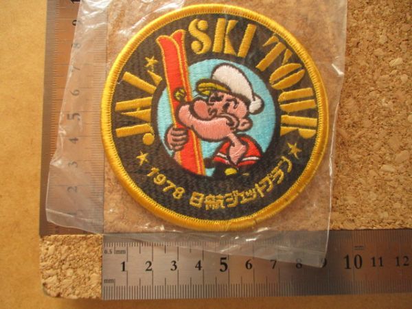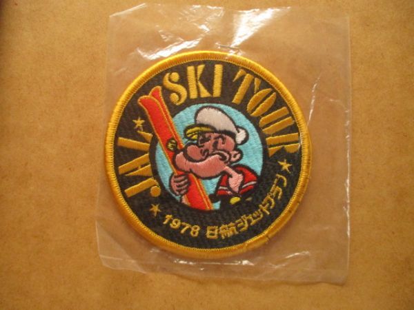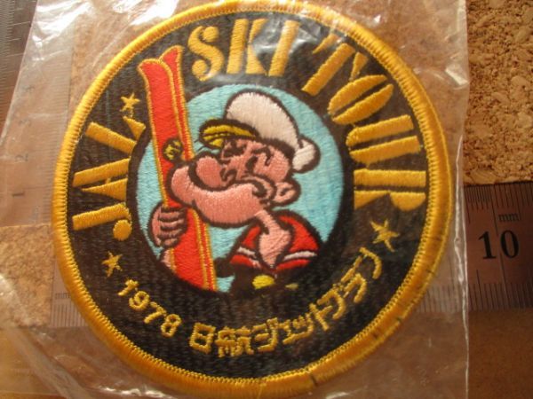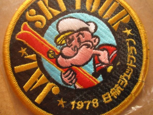 70s 1978年 JALスキーツアー ポパイ 北海道 刺繍ワッペン/日航ジェットプラン アメコミ キャラクター レトロ アップリケ旅行アニメ V153