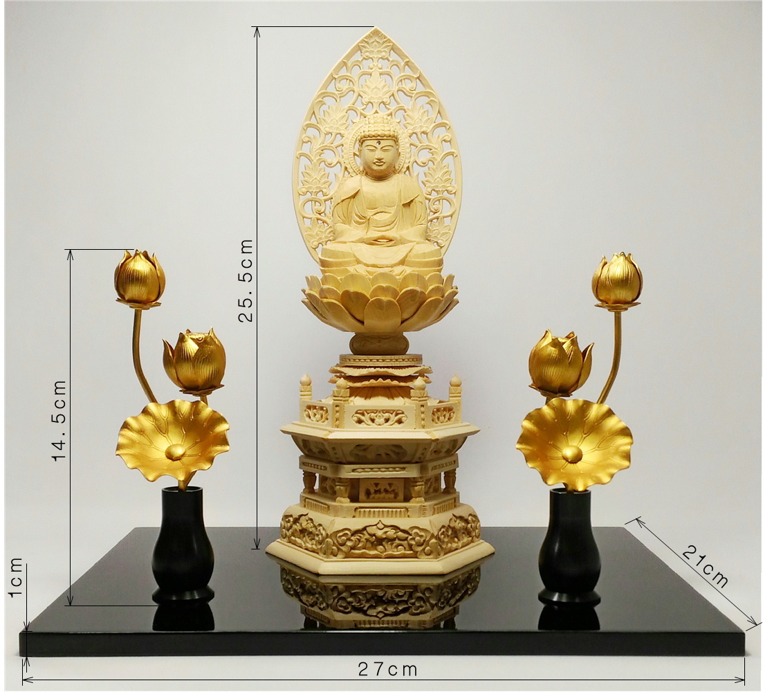 仏像:六角台座 座釈迦如来2寸 高さ25.5㎝×台巾11.5㎝