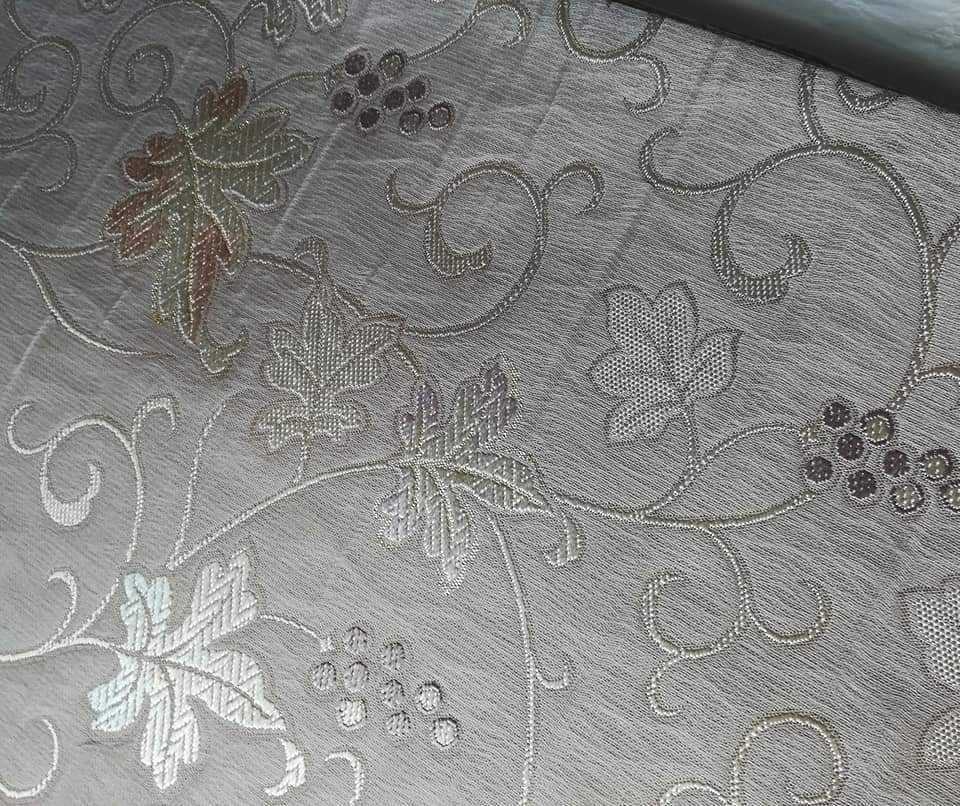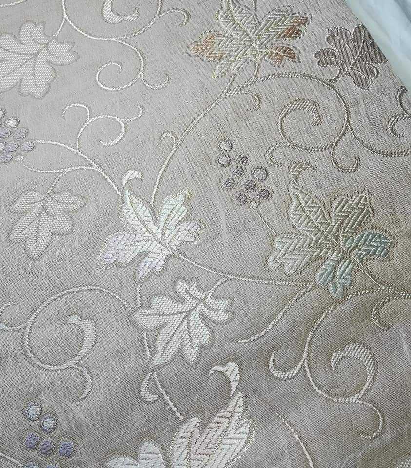 優しいベージュに葡萄唐草柄の名古屋帯です。