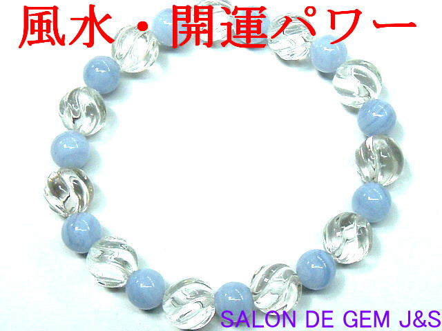 【新品】【大粒】【上質】【高級天然ブルーレースアゲート/極上天然クリスタル 風水・開運ブレスレット】【A 約8.0mm/C 10.0mmS字カット】【内径:約17cm強】【浄化済商品】【赤字大処分】【収納ポーチ付】【本数限定】【製作元オークション】