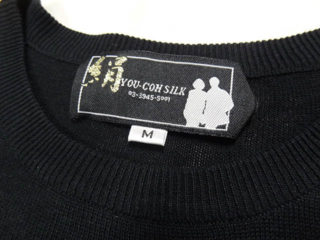 YOU-COH 希少 絹 シルク 100% クルーネック シンプル 黒 ニット サイズ M 日本製 ジャパン ビンテージ 80S 90S レア 珍品 ブラック 素材