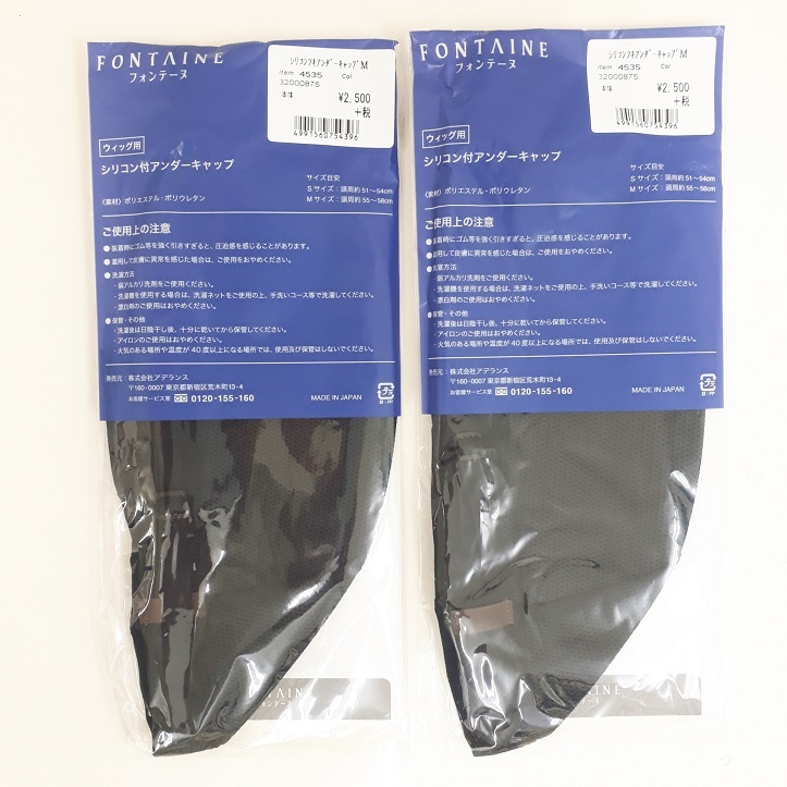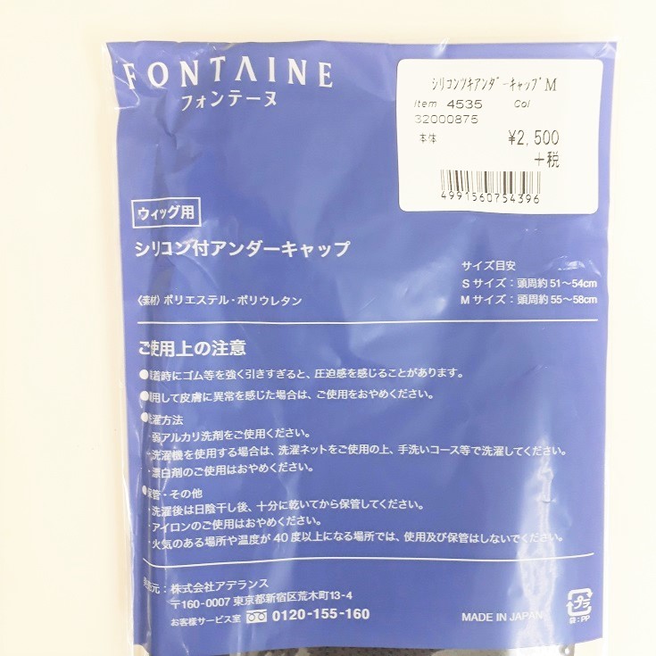 | 商品説明 | アデランス・フォンテーヌの ウィッグ用 シリコン付アンダーキャップ Mサイズ 2個セット (ウィッグを装着する前につけるアンダーキャップ) 【汗にも安心】 ・優れた吸水性、拡散機能でドライキープ 【ズレ上がり防止】 ・伸縮性のあるソフトなシリコンが、ズレ上がりを防止 【フィット感】 ・伸縮性のある素材+サイズ調整ゴムでしっかりフィット |