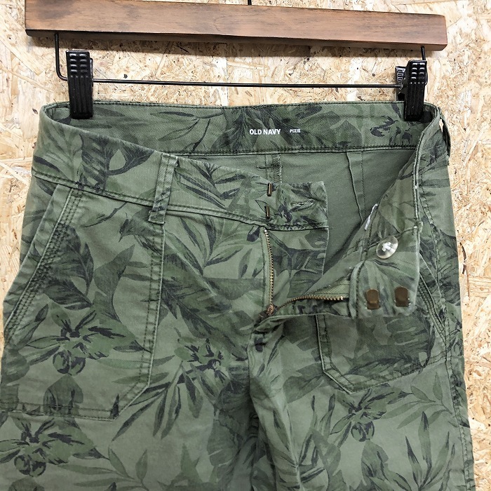 | 商品タイトル | OLD NAVY PIXIE オールドネイビー - レディース ベイカーパンツ ストレッチ リーフ柄 テーパード ロング - ミリタリーグリーン・カーキ系 |