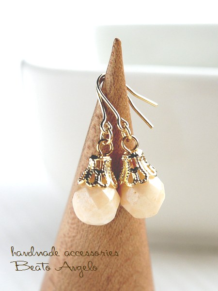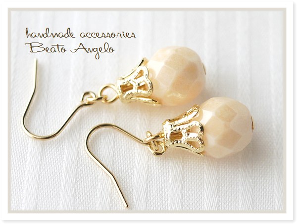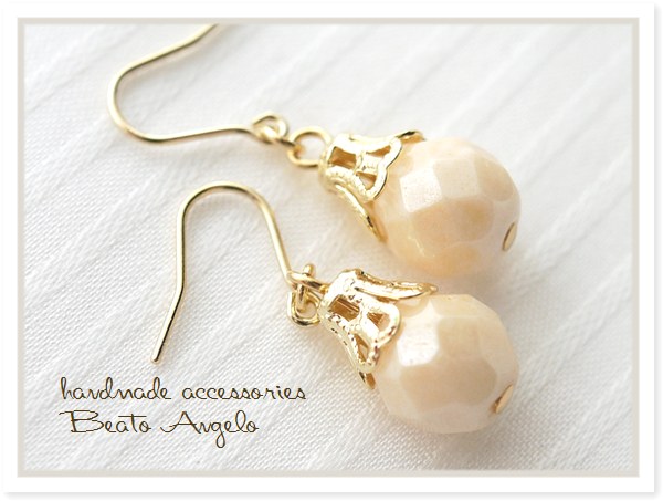 ◆◆+angelo+チェコビーズの一粒ピアス(p-264)アンティークホワイト G c001 アイボリー シンプル チタン 樹脂 イヤリング