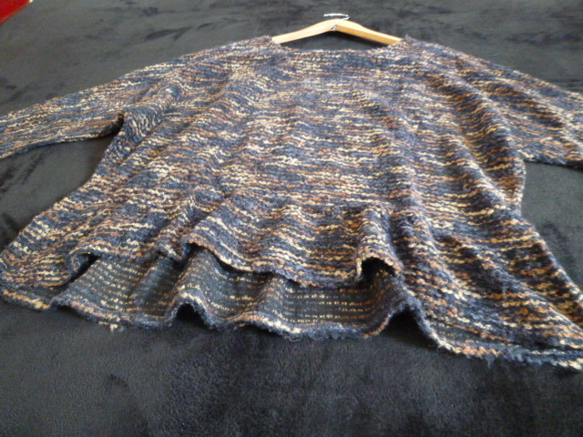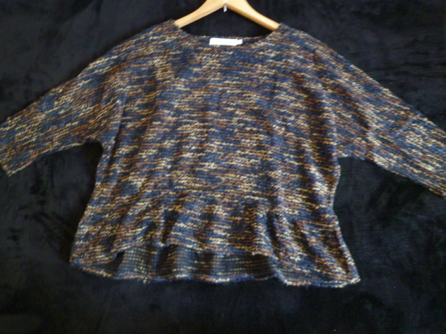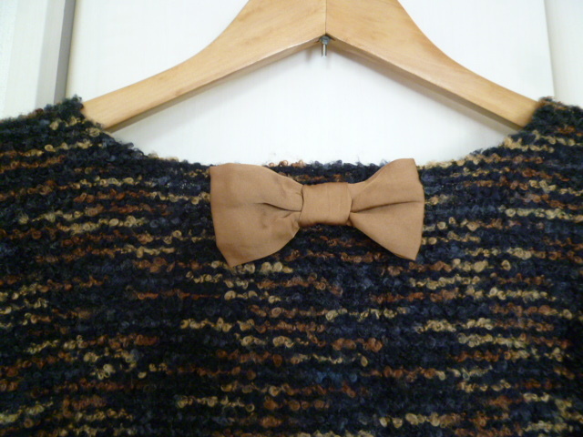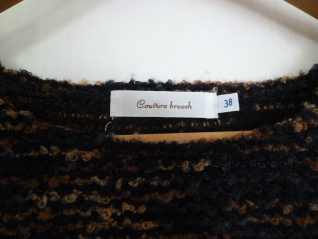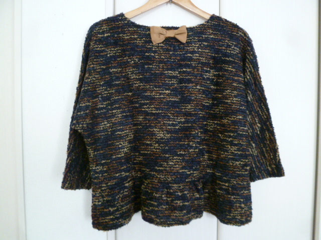Couture brooch/クチュールブローチ○黒茶ミックス色ドルマン袖裾フリルトップス38/バックリボン長袖カットソーワールド○②ST1028